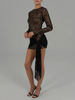 Victoria’s Vogue Sheer Lace Sexy Mini Dress For Women Fashion O Neck Long Sleeve Irregular Ruched Bodycon Night Club Party Dress