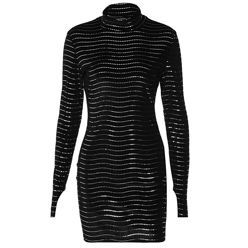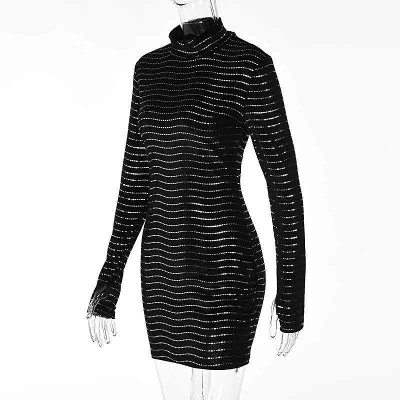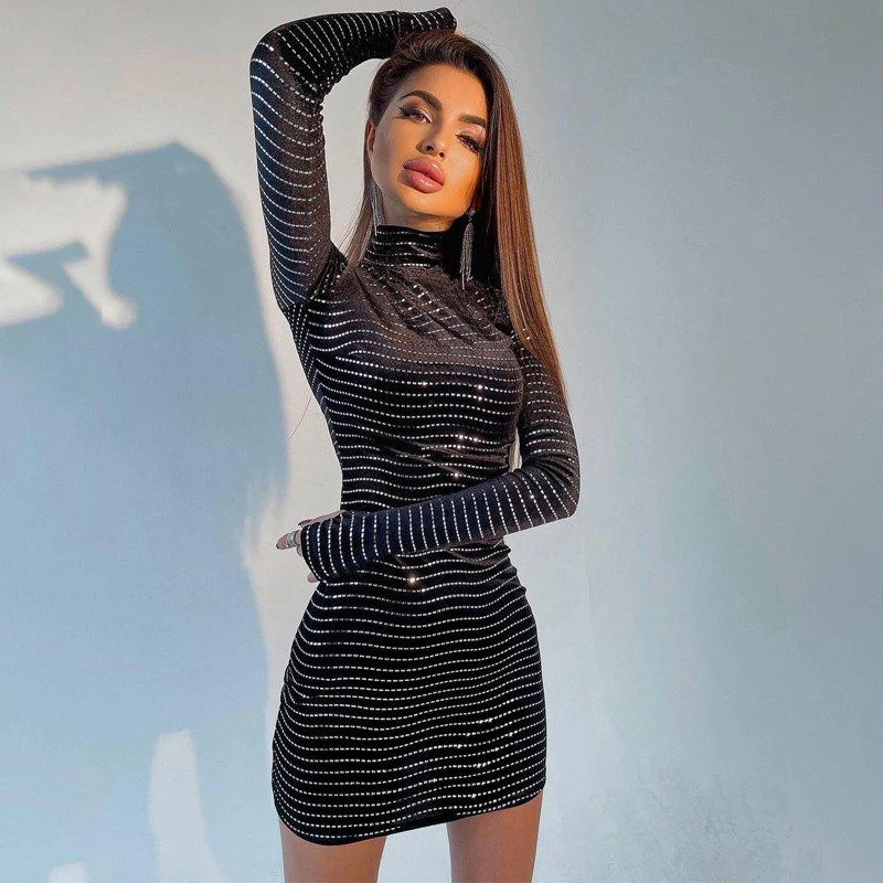victoria’s vogue Shine Bling Sequins Long Sleeve Turtleneck Bodycon Slim Sexy Mini Dress 2021 Fall Women Christmas Party Club Y2K