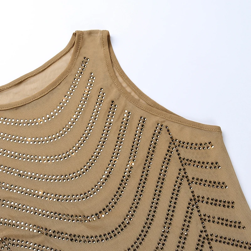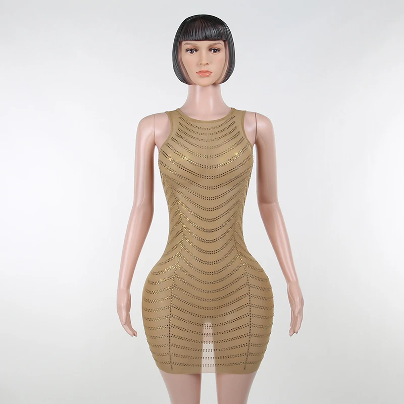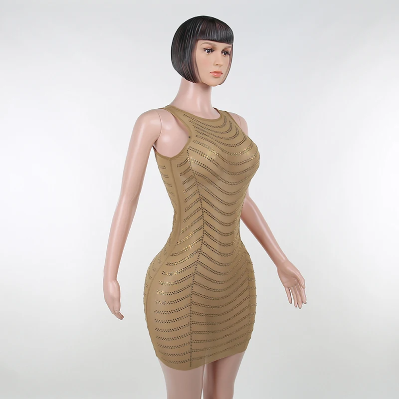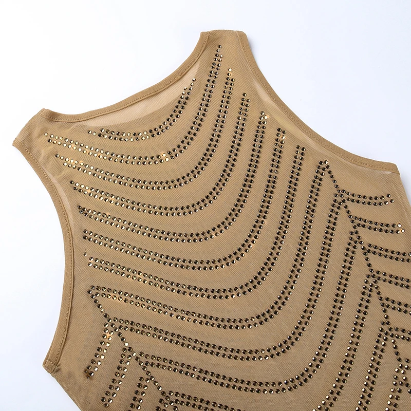 victoria’s vogue Shine Diamond Print Sleeveless Mini Dress 2022 Fall Bodycon Fashion Evening Party Y2K Elegant Office Lady