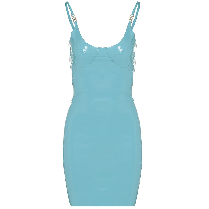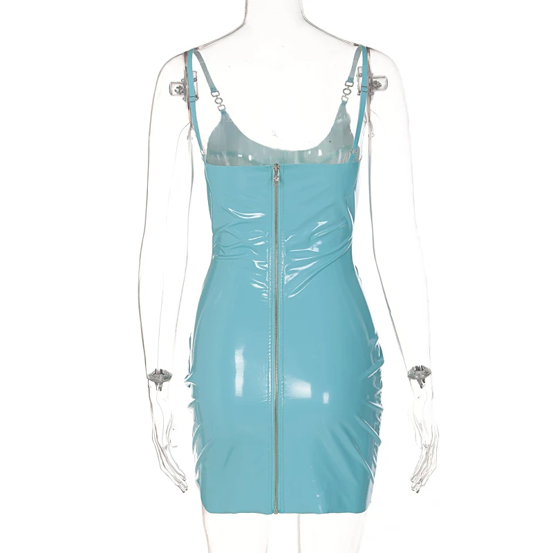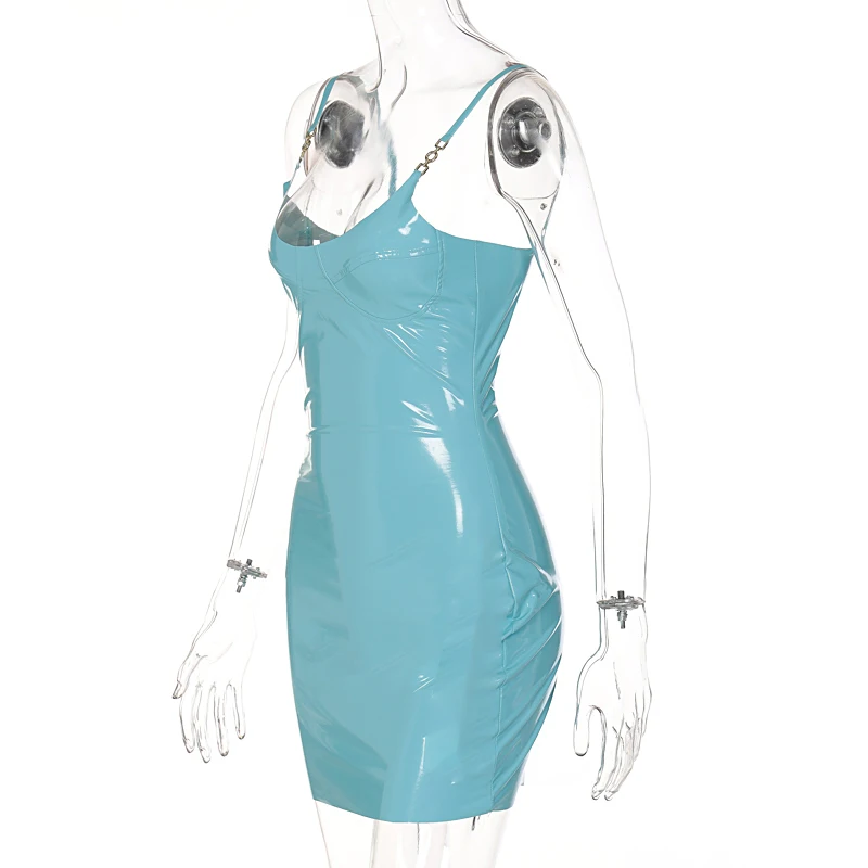 victoria’s vogue Shine Pu Leather Solid Sleeveless Backless Slip Mini Dress 2022 Summer Bodycon Sexy Streetwear Party Club Clothing Y2K