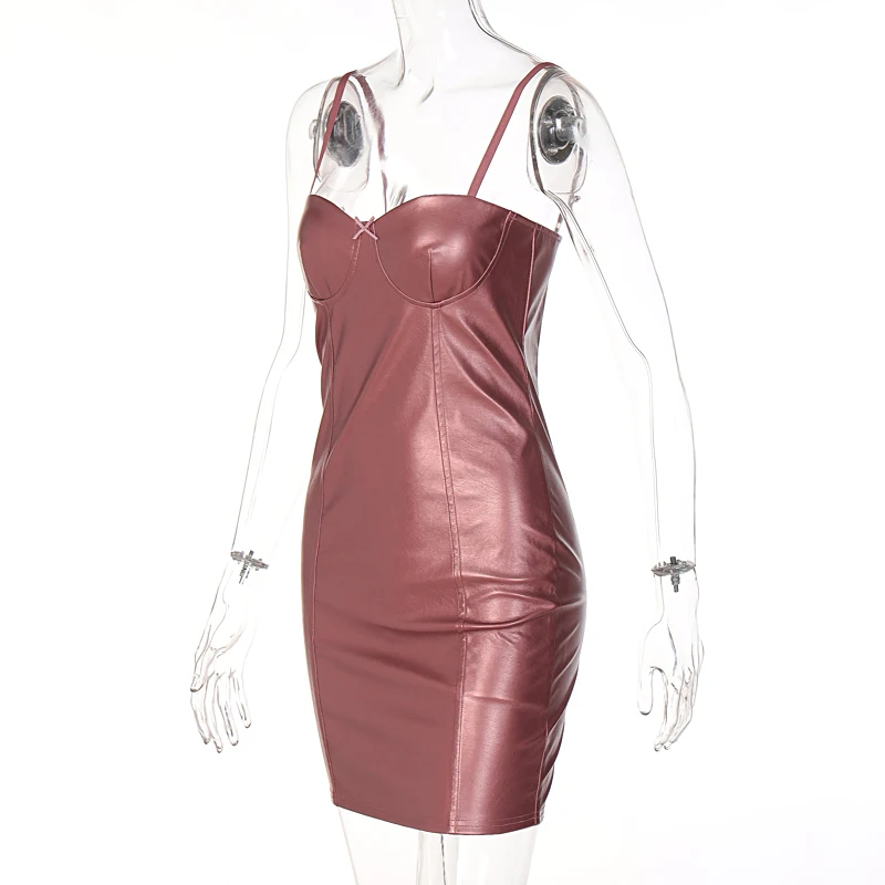 victoria’s vogue Shine Pu Solid Slip Sleeveless Sexy Pleated Mini Dress Bodycon 2022 Summer Women Fashion Outfits Beach Club Elegant