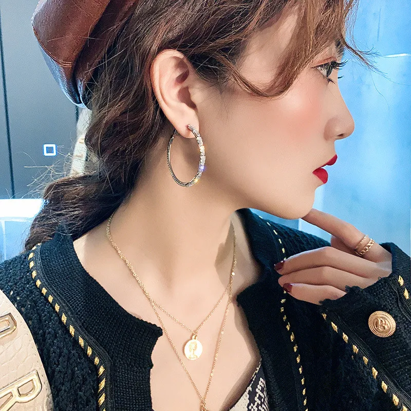 Victoria’s Vogue Shine Round Geometric Zircon Hoop Earrings for Women Circle Crystal Earrings Jewelry Party Gifts
