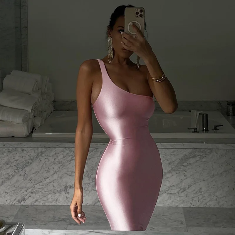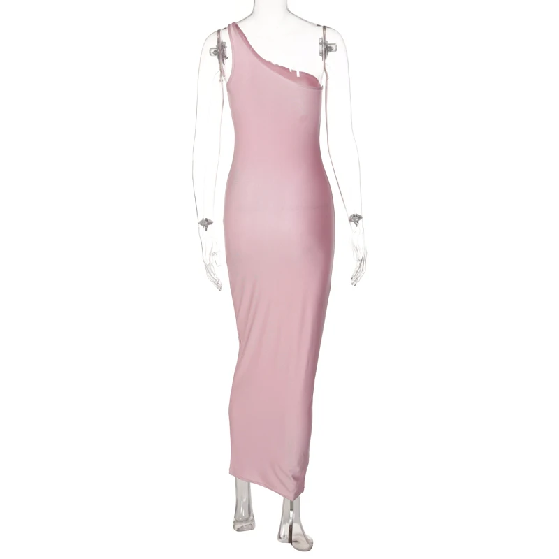 victoria’s vogue Shine Solid One Shoulder Backless Slim Maxi Prom Dress 2022 Summer Beach Streetwear Party Club Cute Clothes Y2K Robe