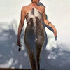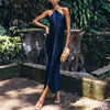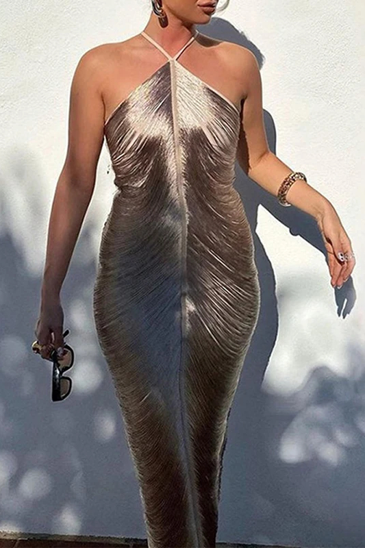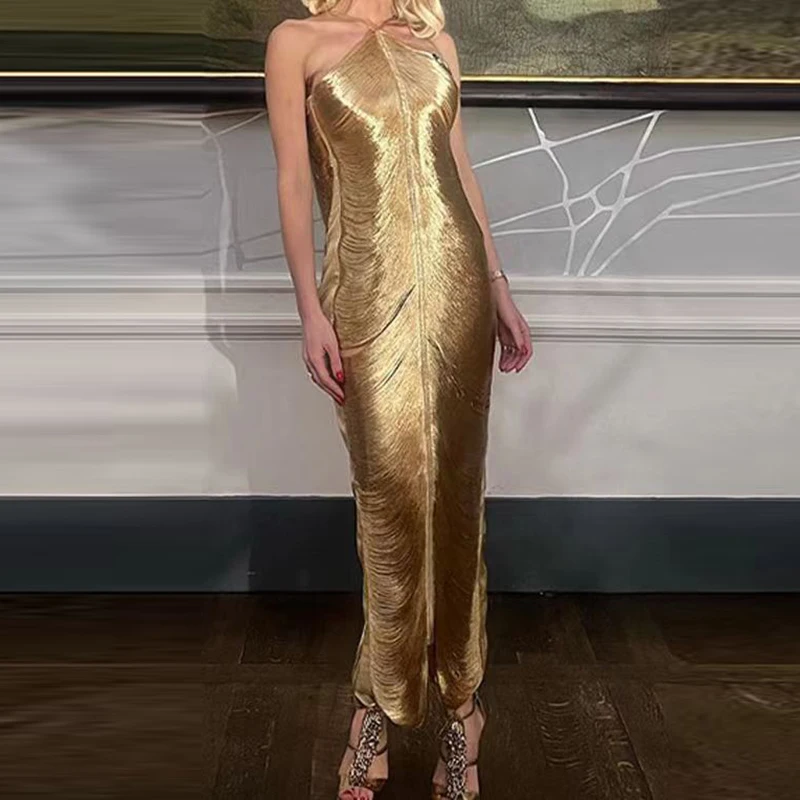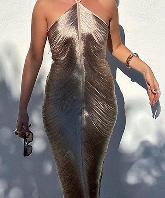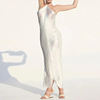 Victoria’s Vogue Sexy Hollow Out Sleeveless Tassels Women’s Dress Fashion Halter Slim Solid Color Long Dress Elegant High Waist Split Party Dress