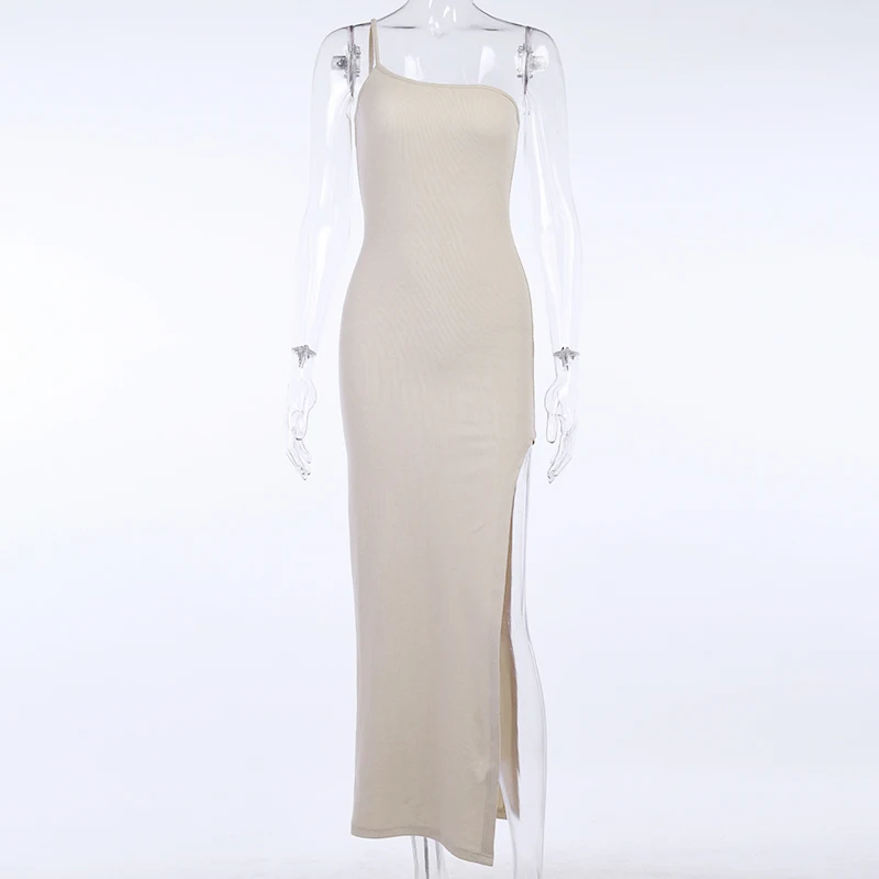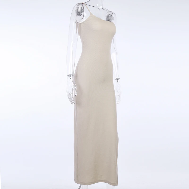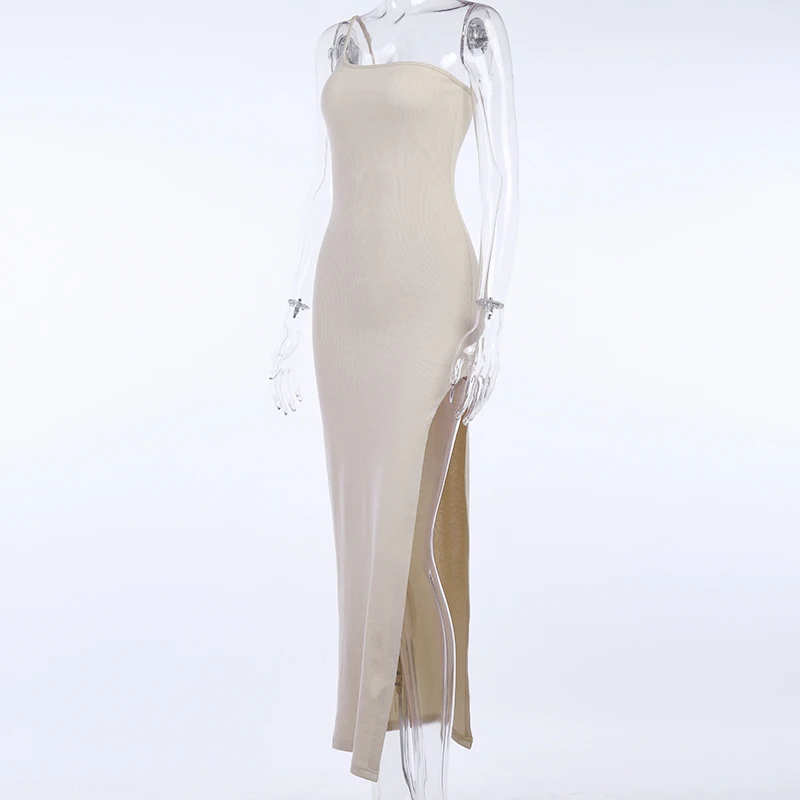 victoria’s vogue Side Split Dress Women Sexy Sleeveless Solid Knitted Ankle-Length Party Dress Slim Elastics Off Shoulder Dress Cotton