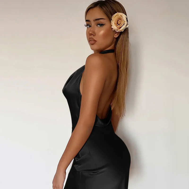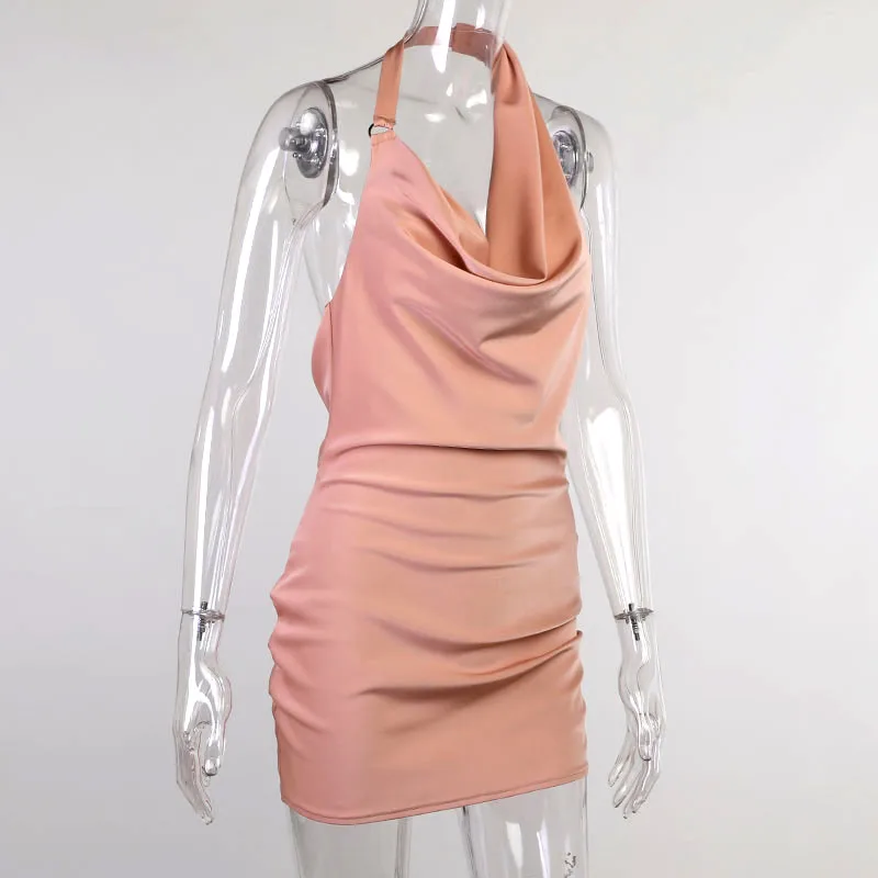 victoria’s vogue Silk Pile Collar Sleeveleless Mini Dress Halter Backless Women Solid Color Summer Sexy Elegant Party Dresses Women2021