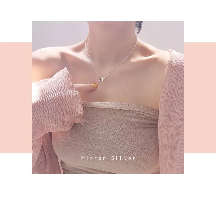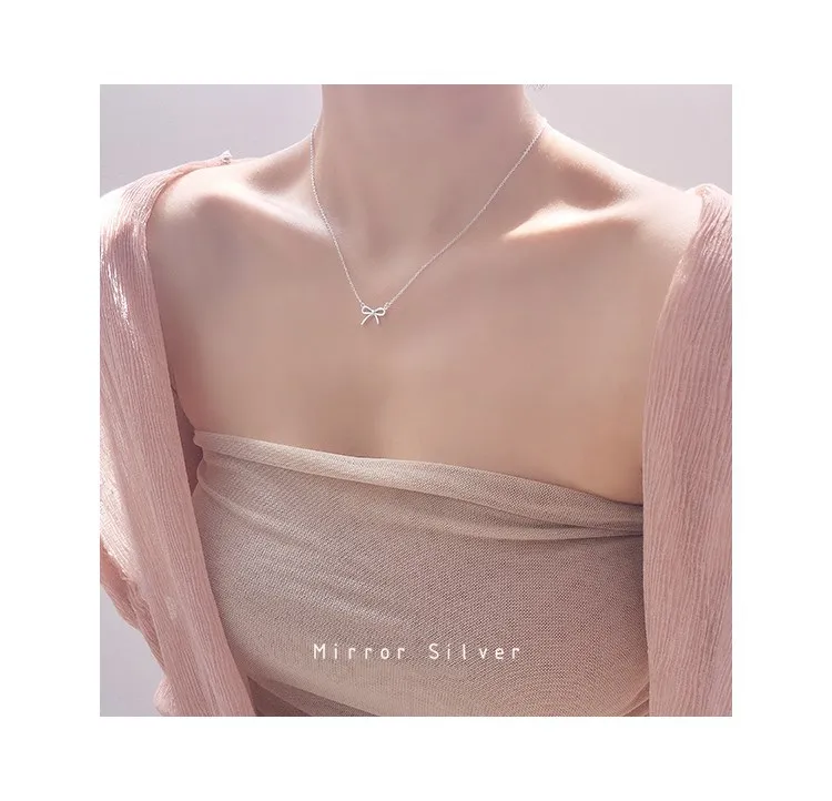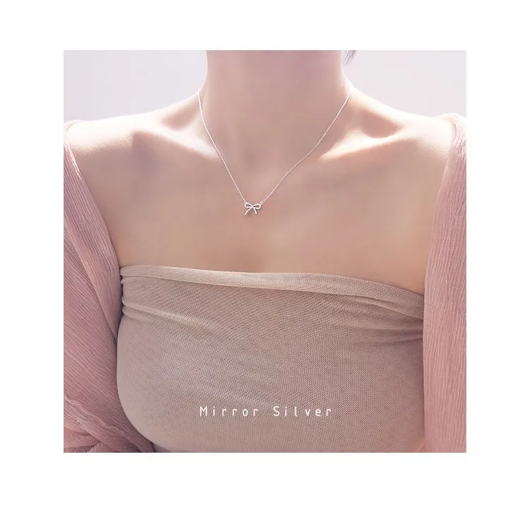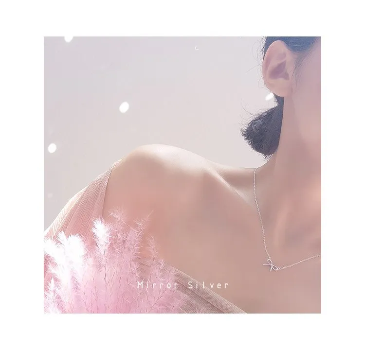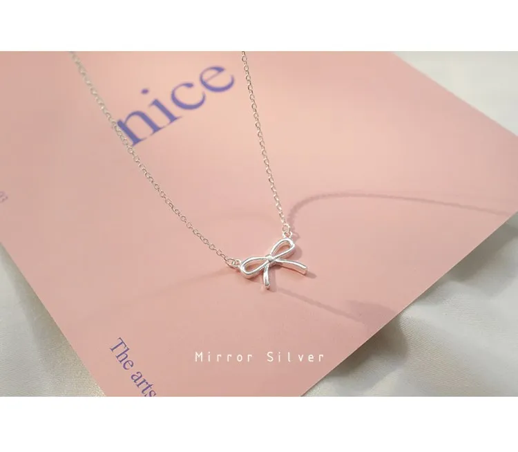 Victoria’s Vogue Simple High-Quality Allergy-Resistant Female Fashion 925 Sterling Silver Jewelry Bow Pendant Necklace