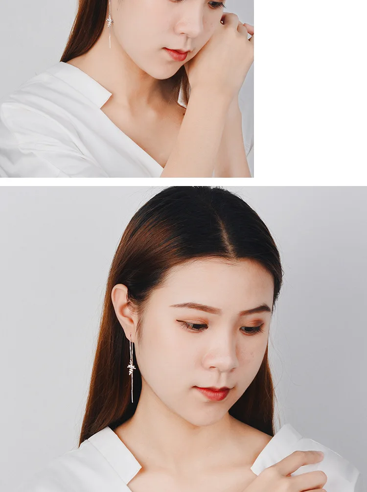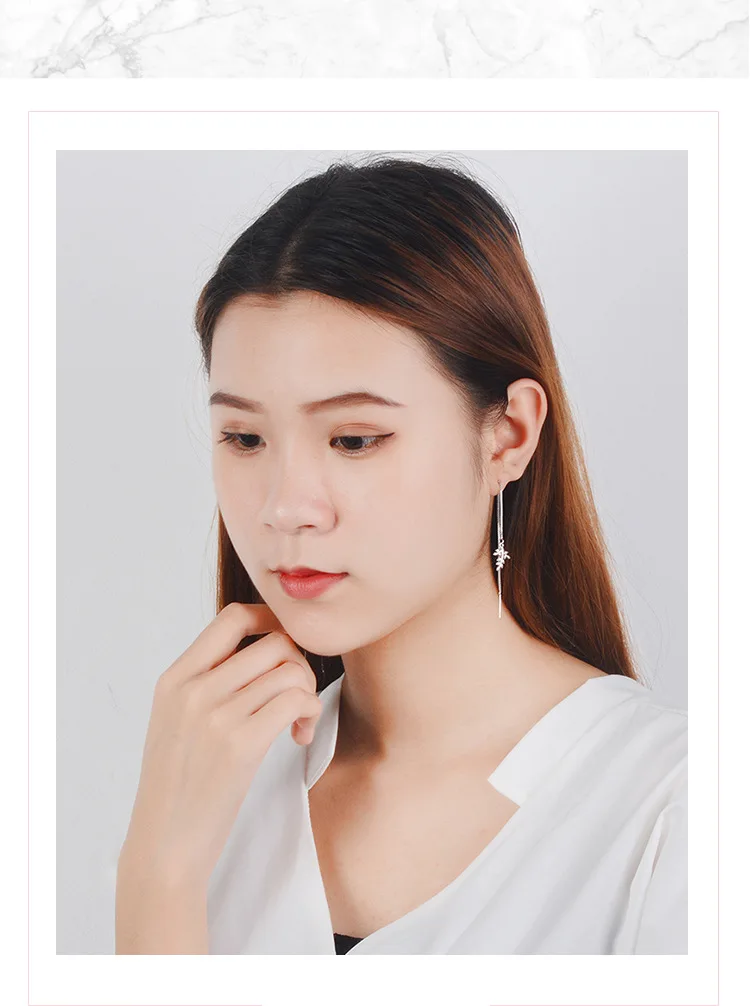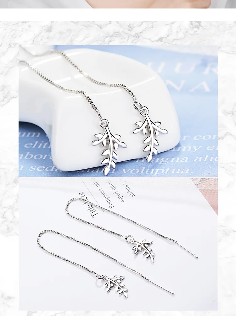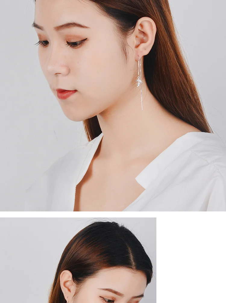 Victoria’s Vogue Simple Maple Leaf Long Tassel Ear Line 925 Sterling Silver Jewelry Fashion Women Temperament Literary Plant Dangle Earrings