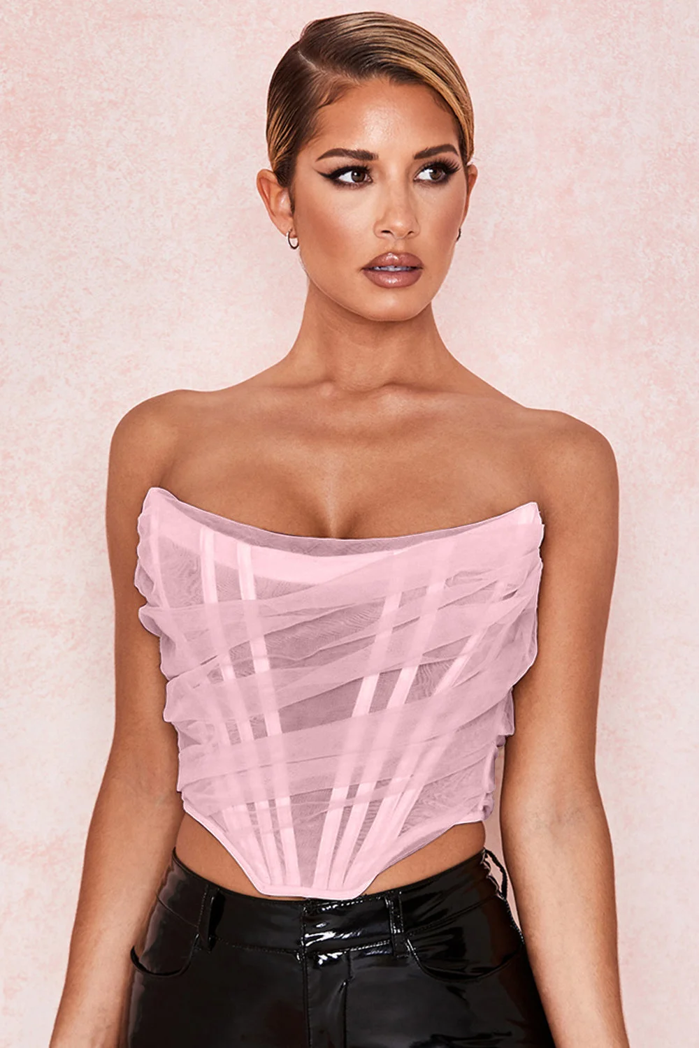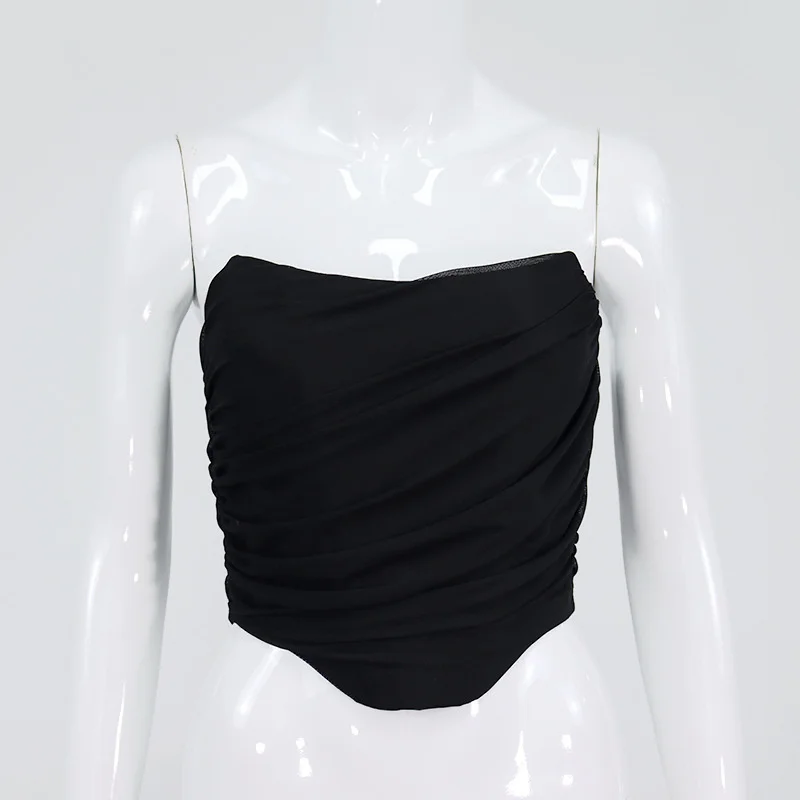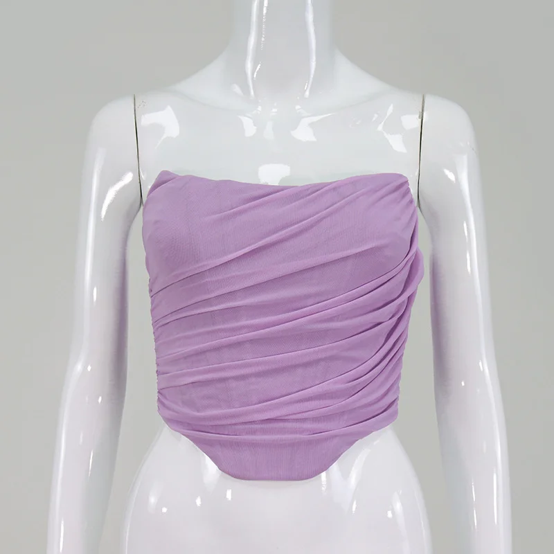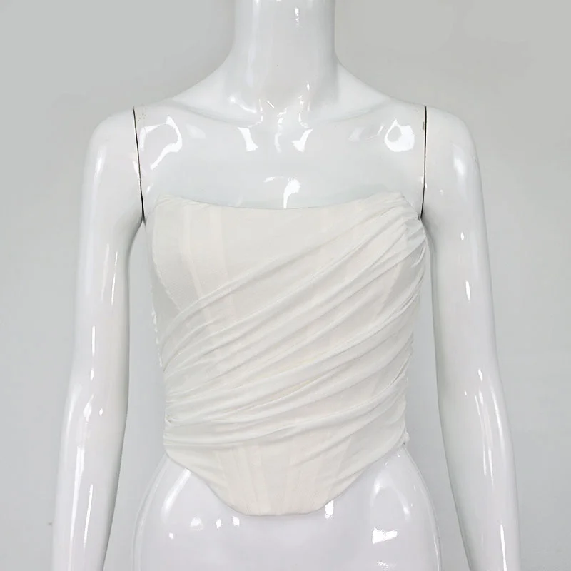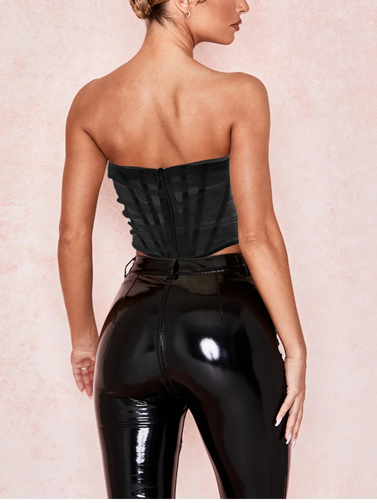 victoria’s vogue Sleeveless Fashion Strapless Bustier Corset Crop Tops Female Mesh Backless White Women Tops Zipper Summer 2022