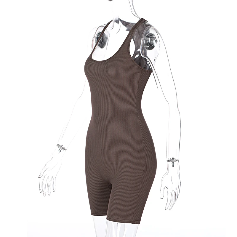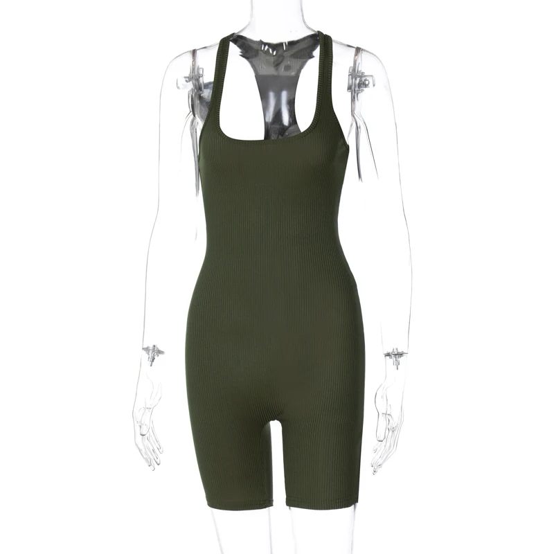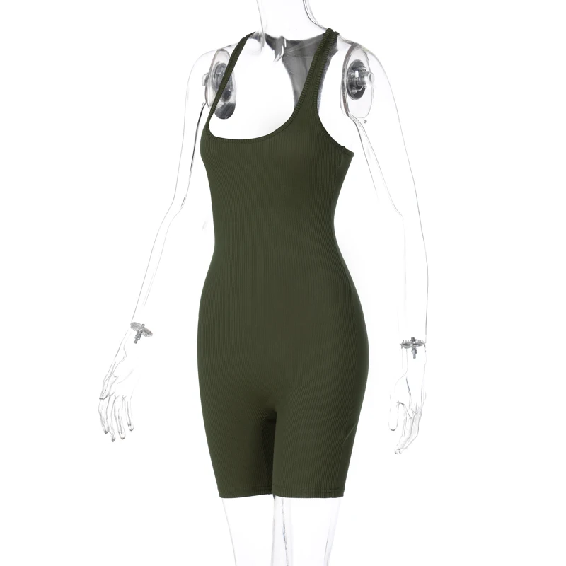 victoria’s vogue Sleeveless Halter Solid Backless Ribbed Skinny Bodycon Playsuit 2021 Autumn Winter Women Streetwear Casual Romper