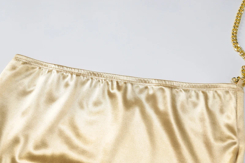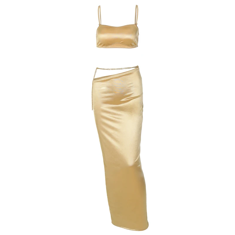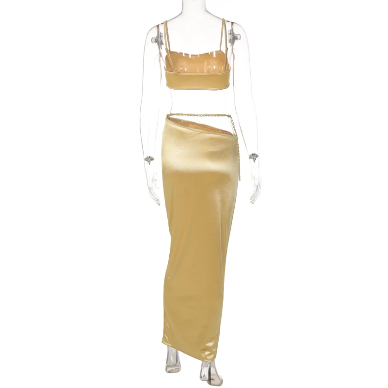 victoria’s vogue Slip Sleeveless Crop Top Metal Chain Maxi Dress 2 Pieces Set 2022 Summer Women Skinny Fashion Sexy Beach Club Wear Y2K