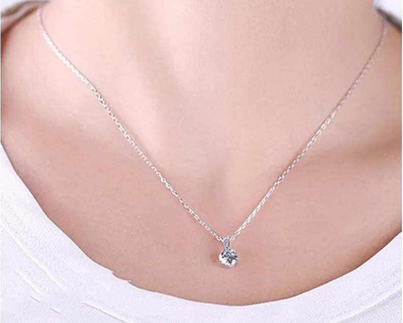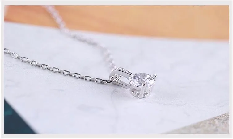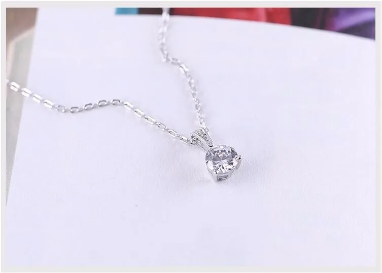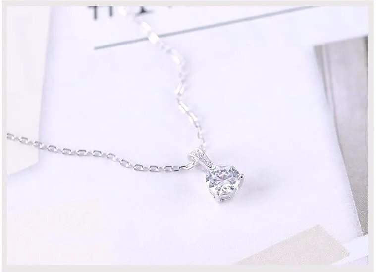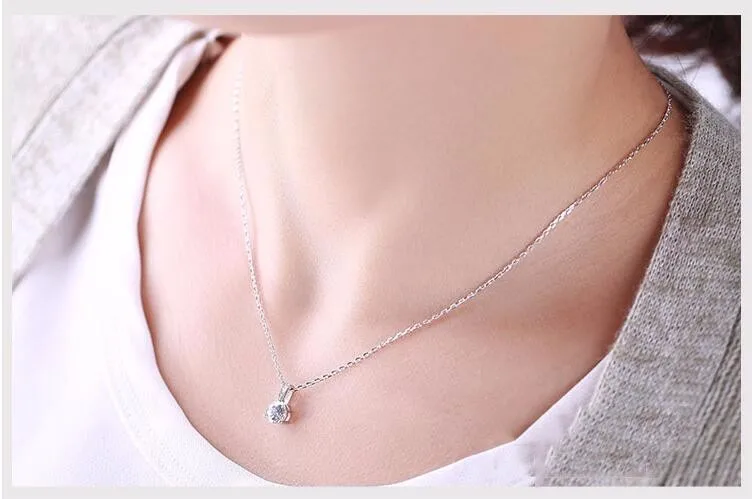 Victoria’s Vogue Small Zircon 925 Sterling Silver Jewelry Simple Fashion Crystal Accessories Pendant Necklaces