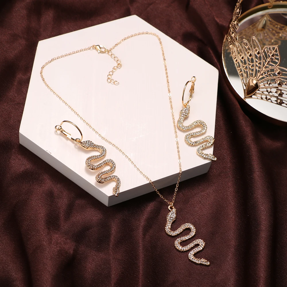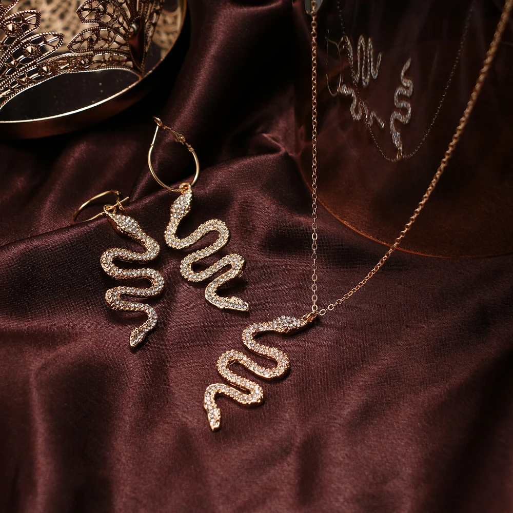 victoria’s vogue Snake Necklace Earrings New Animal Snake Dangle Women Pendant Necklace Trendy Female Birthday Jewelry Set Gift Party
