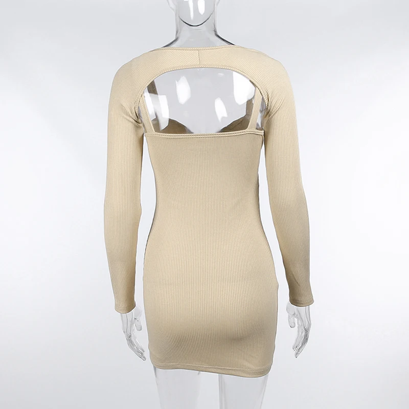 victoria’s vogue Solid 2021 Summer Dresses Women Removable Long Sleeve Sexy Bodycon Mini Party Dress Skinny Eleagnt Fashion Dress Women