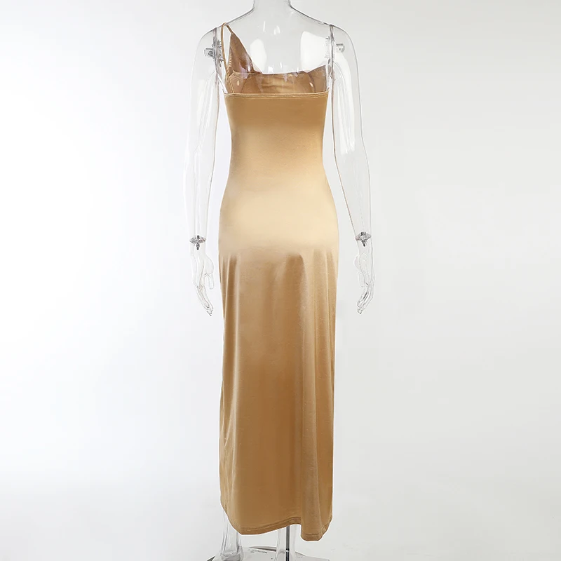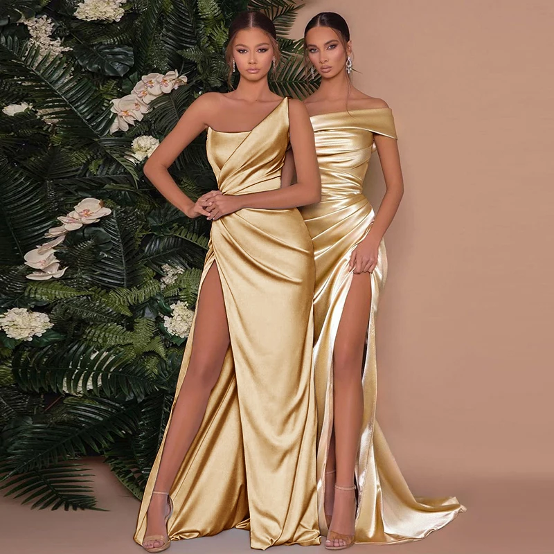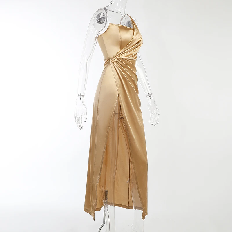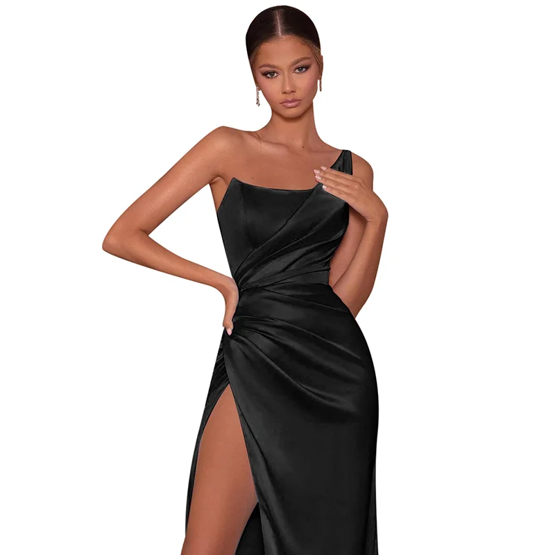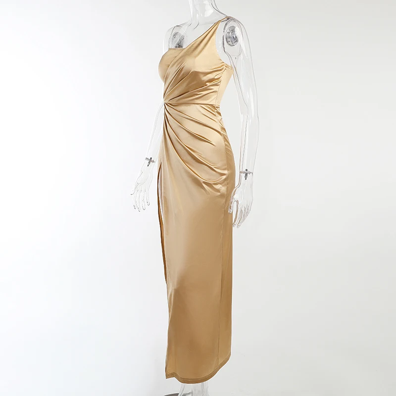 victoria’s vogue Solid Backless One Shoulder Draped Slit Sexy Maxi Dress 2022 Spring Women Fashion Elegant Streetwear Party Wear Y2K