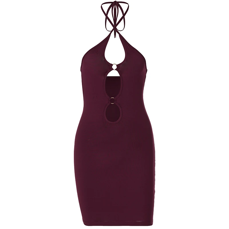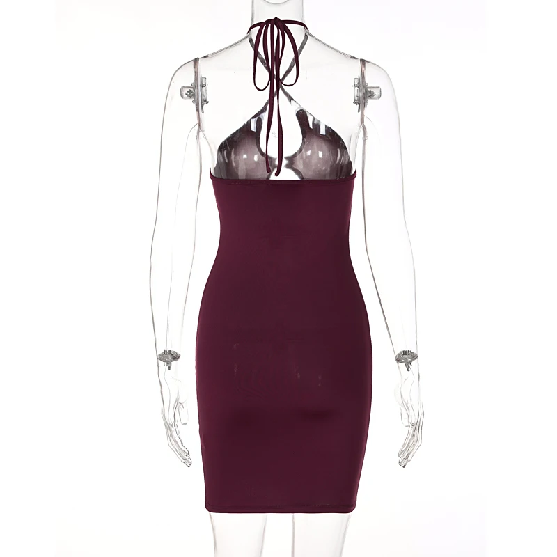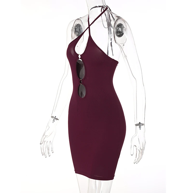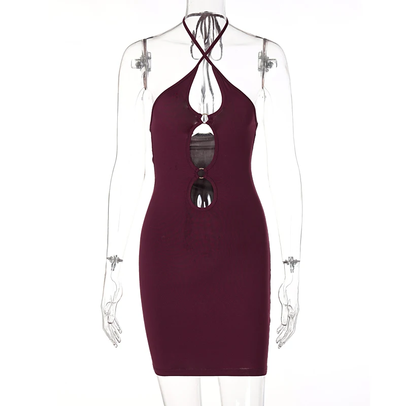 victoria’s vogue Solid Halter Sleeveless Sexy Hollow Out Mini Dress Bodycon 2022 Summer Women Fashion Outfits Beach Club Elegant Wear