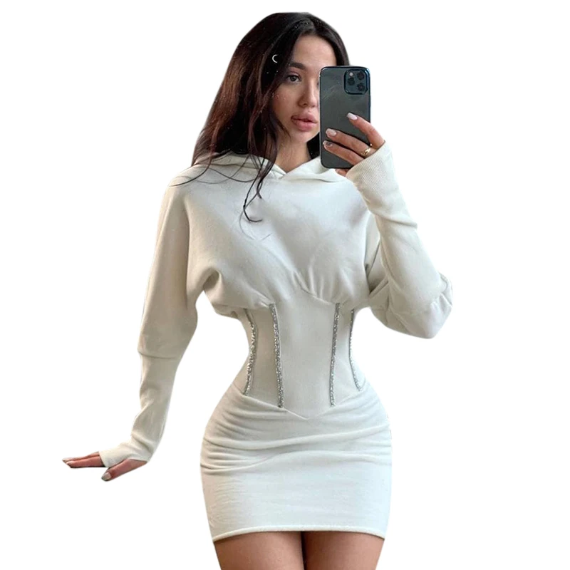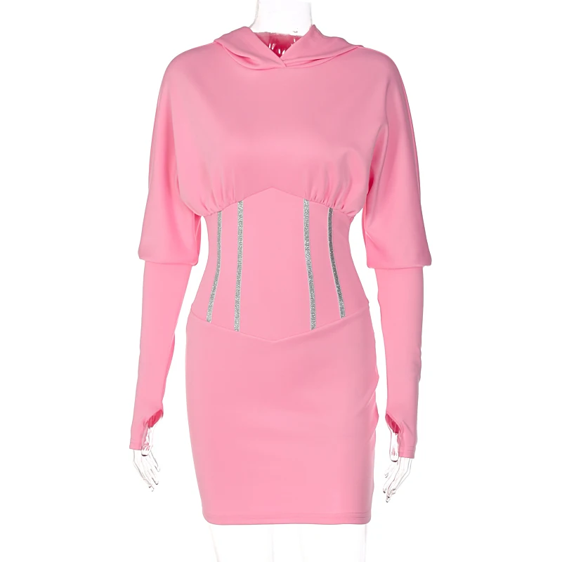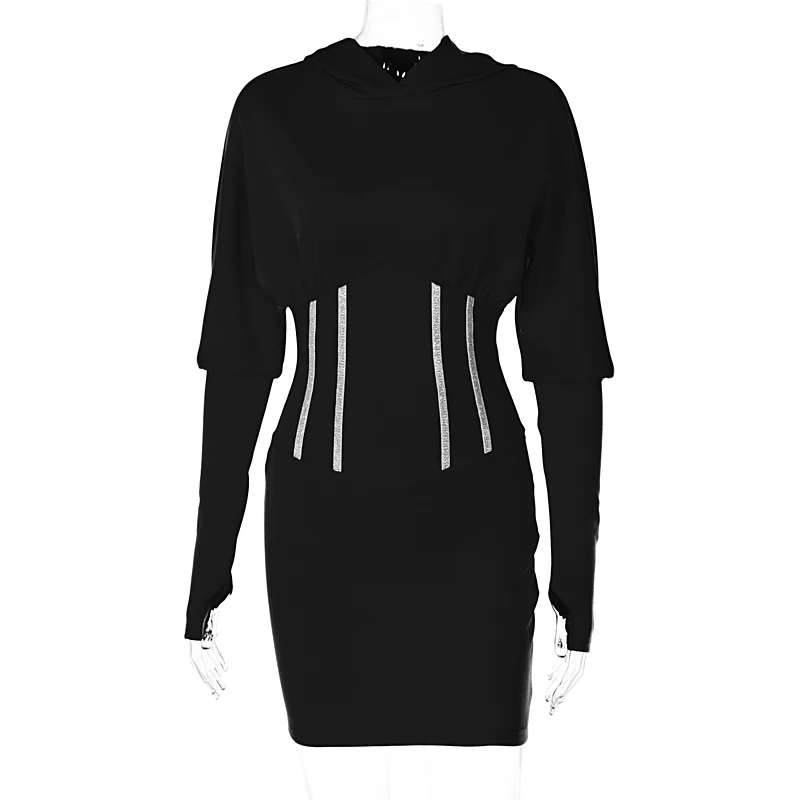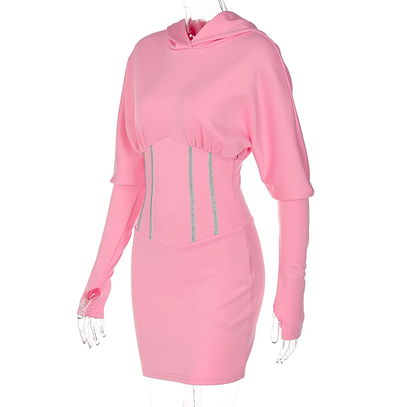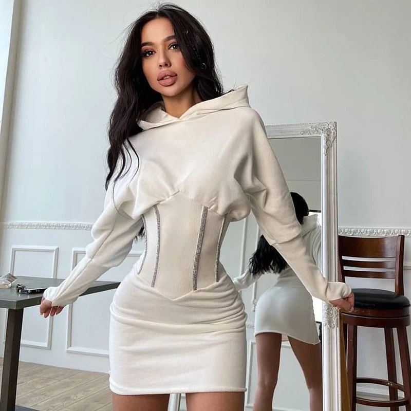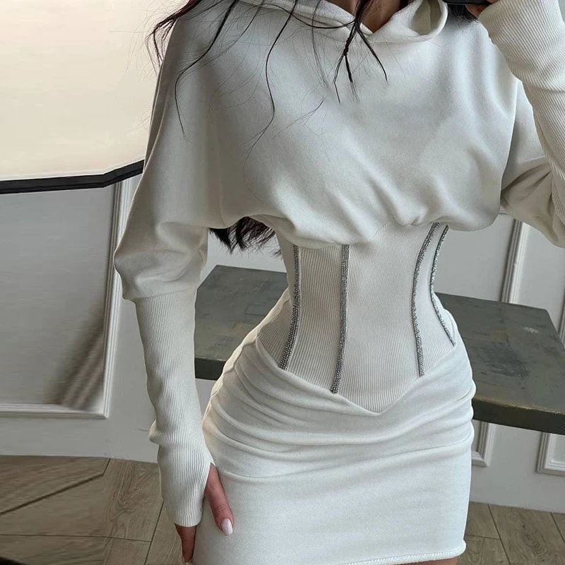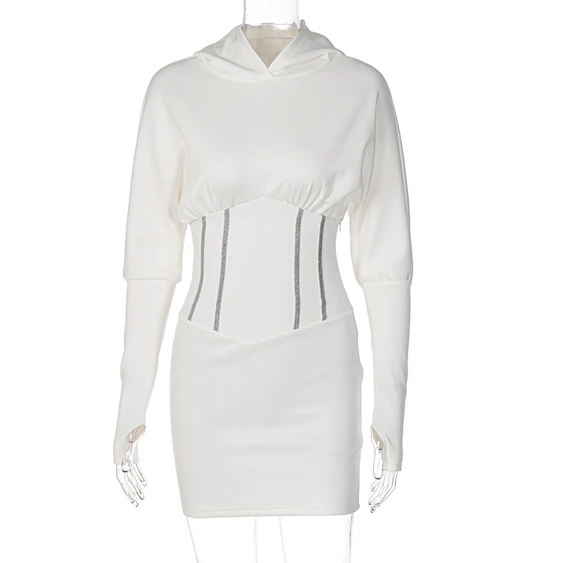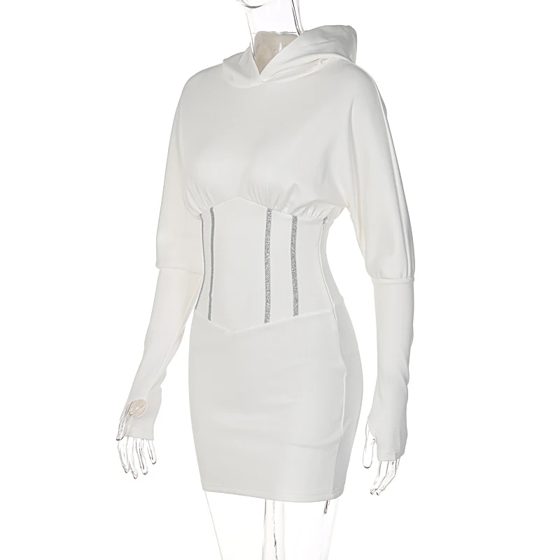 victoria’s vogue Solid Hooded Long Sleeve Corset Patchwork Sexy Women Skinny Mini Dress 2021 Summer Fall Streetwear Outfits Y2K