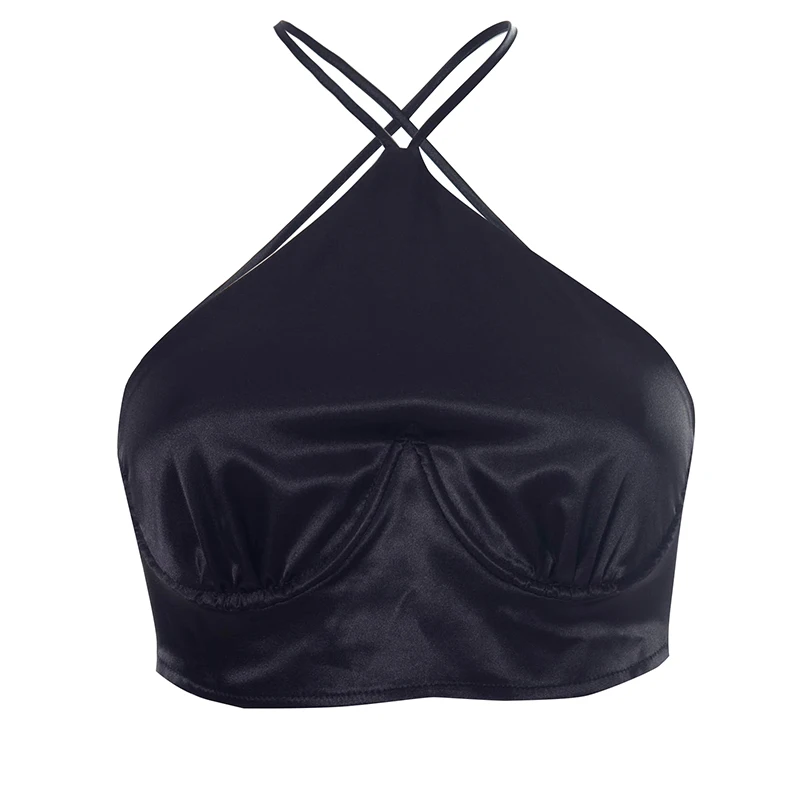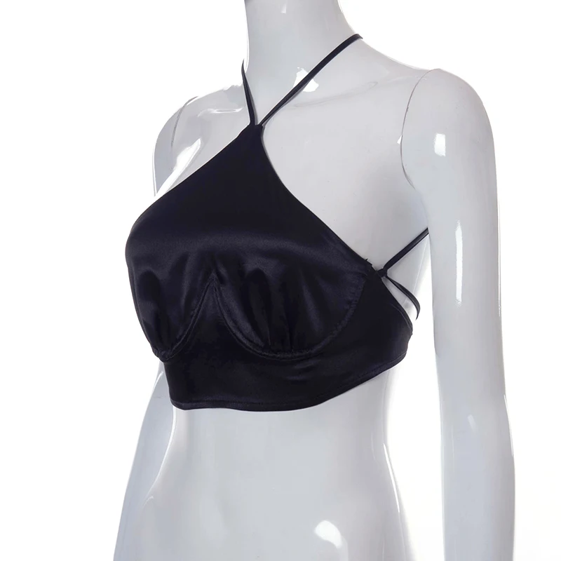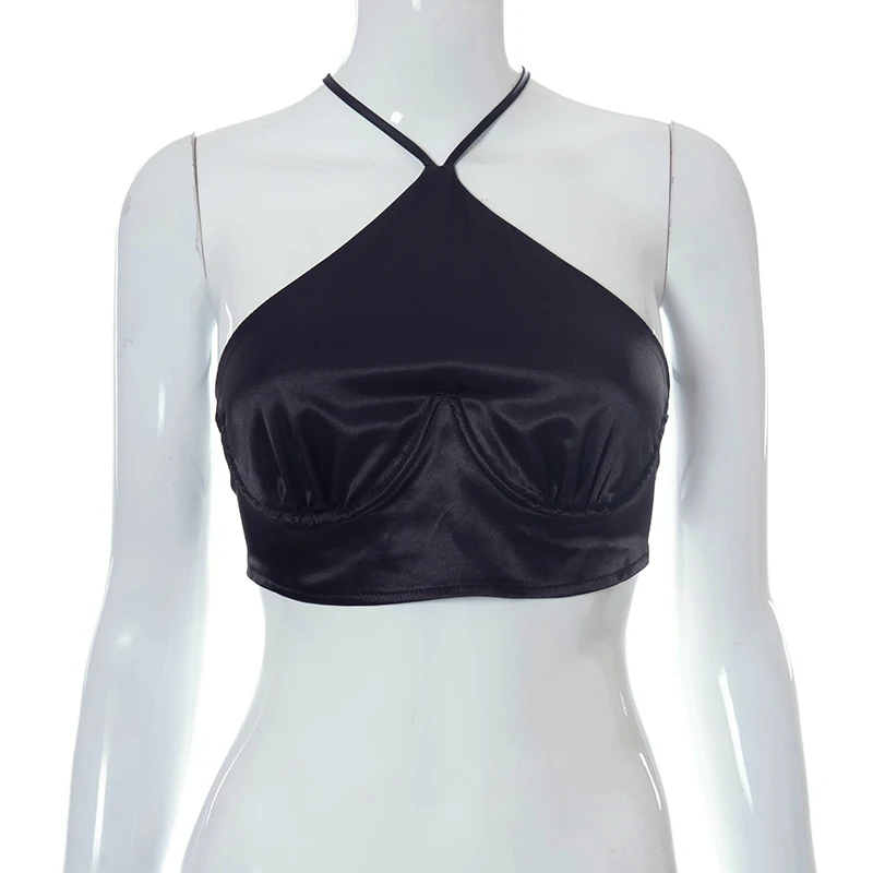 victoria’s vogue Solid Imitated Silk Fabric Patchwork Sleeveless Backless Halter Corset Tops Y2K Summer Women Sexy Wild Streetwears