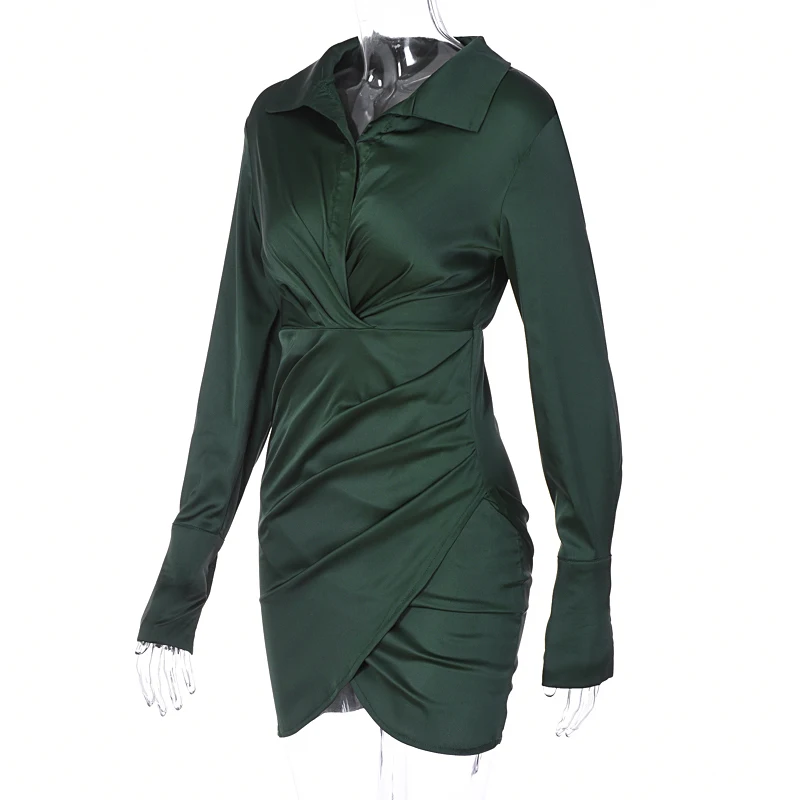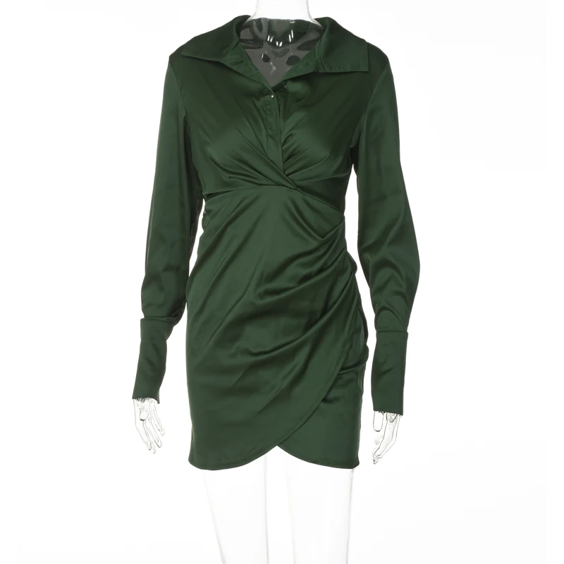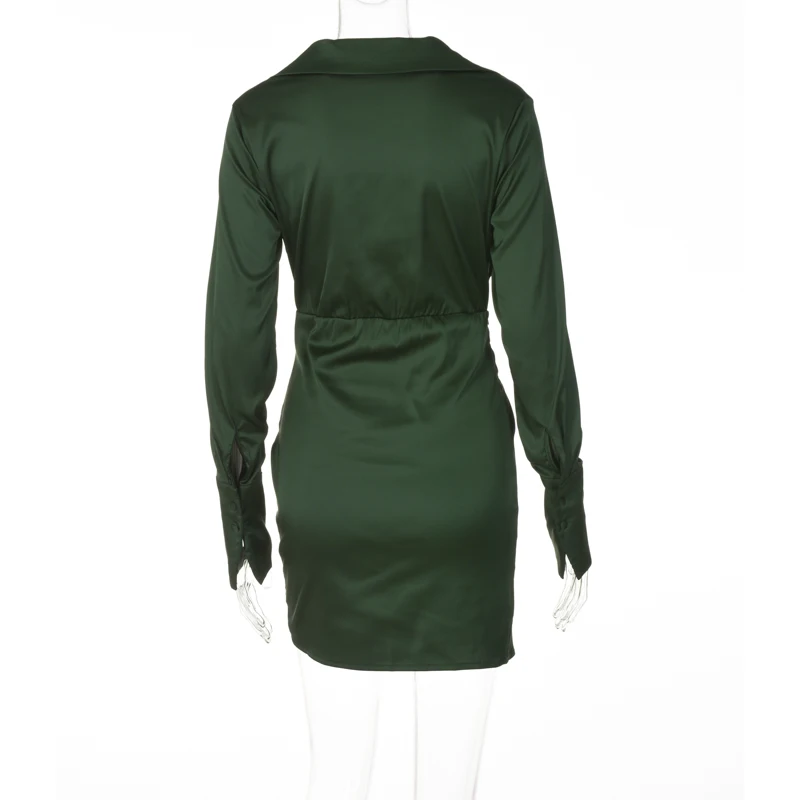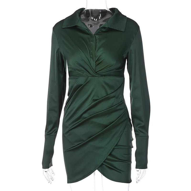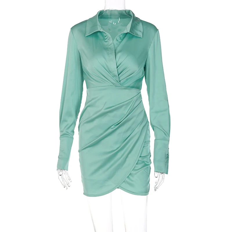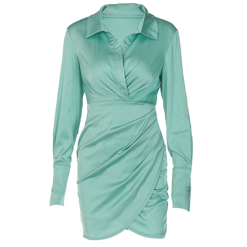 victoria’s vogue Solid Satin Polo Neck Long Sleeves Patchwork Sexy Dress 2021 Fall Winter Women Streetwear Outfits Party Club Y2K