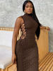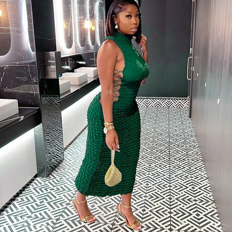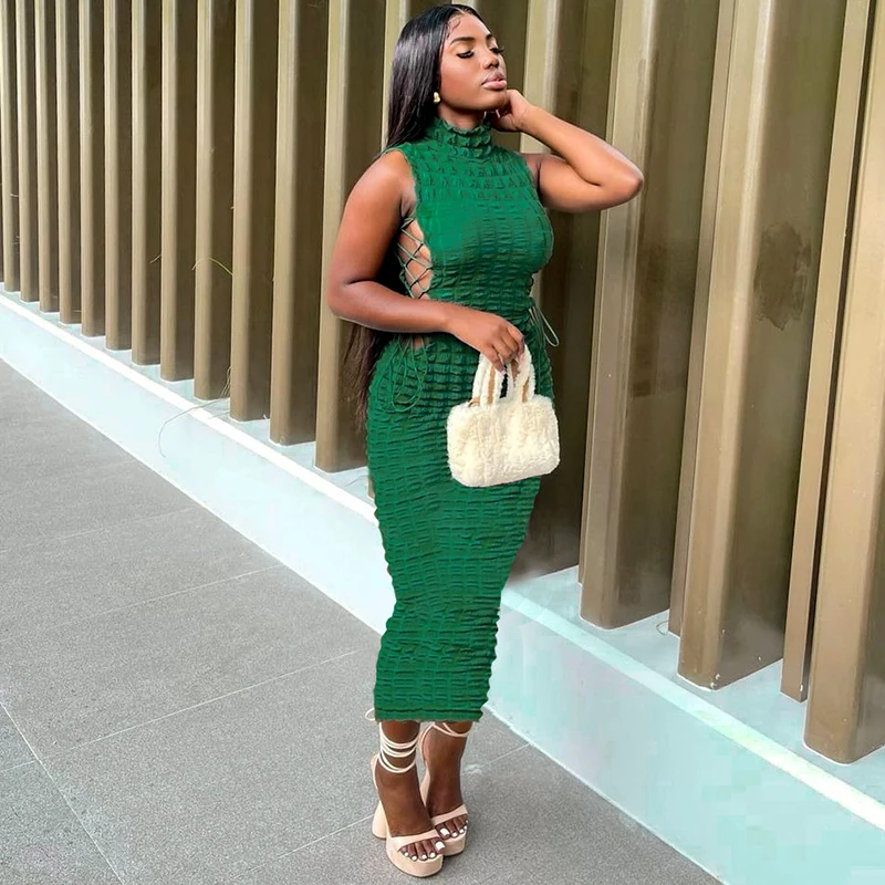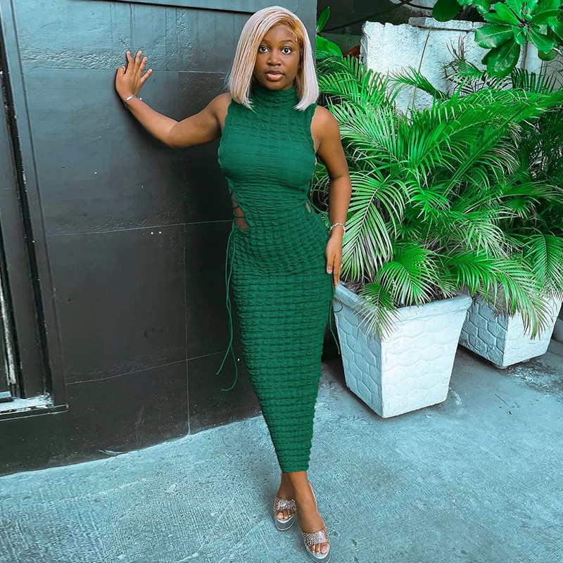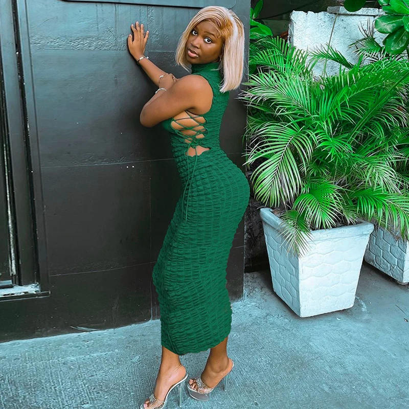 Victoria’s vogue Solid Turtleneck Sleeveless Hollow Out Bandage Maxi Prom Dress Sexy Bodycon Summer Women Elegant Outfits Evening Party