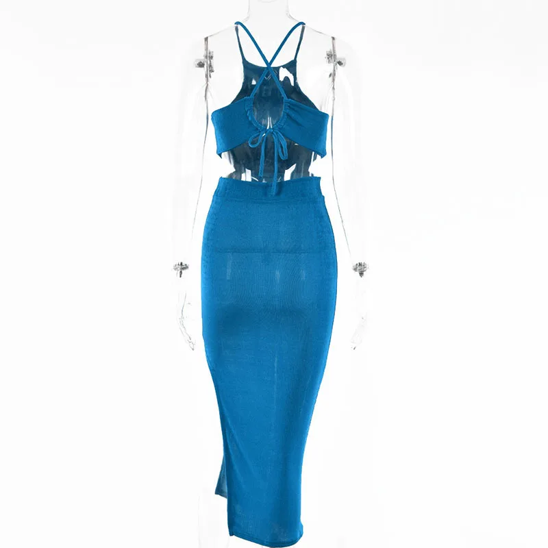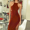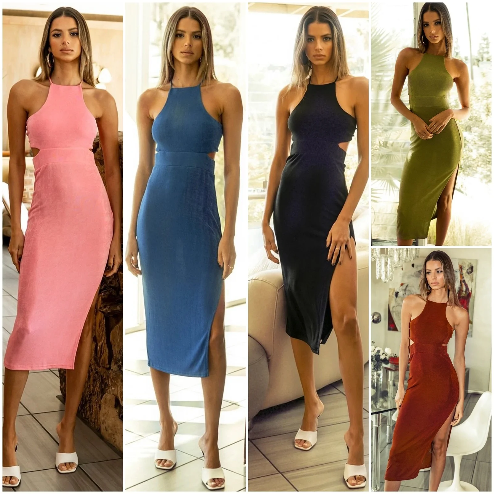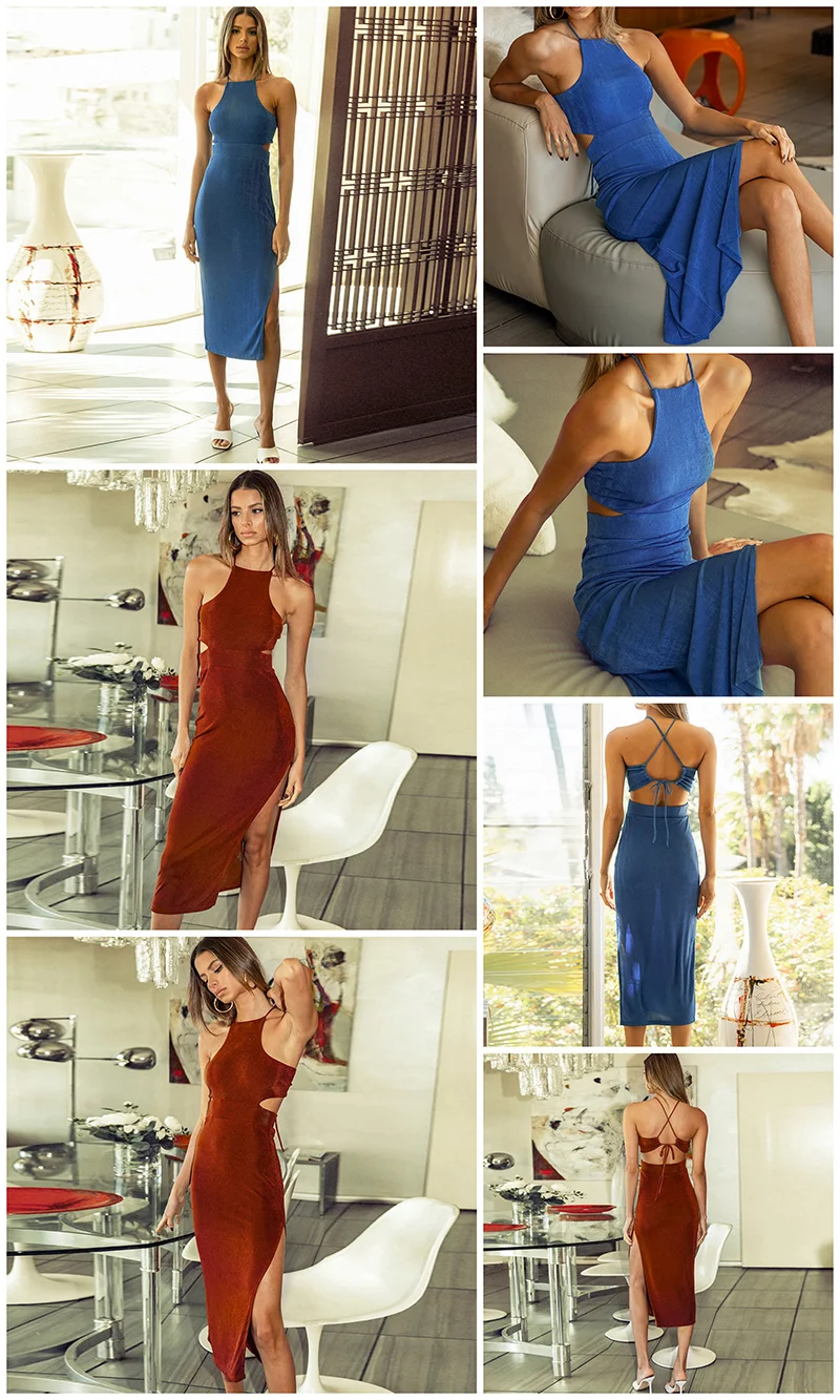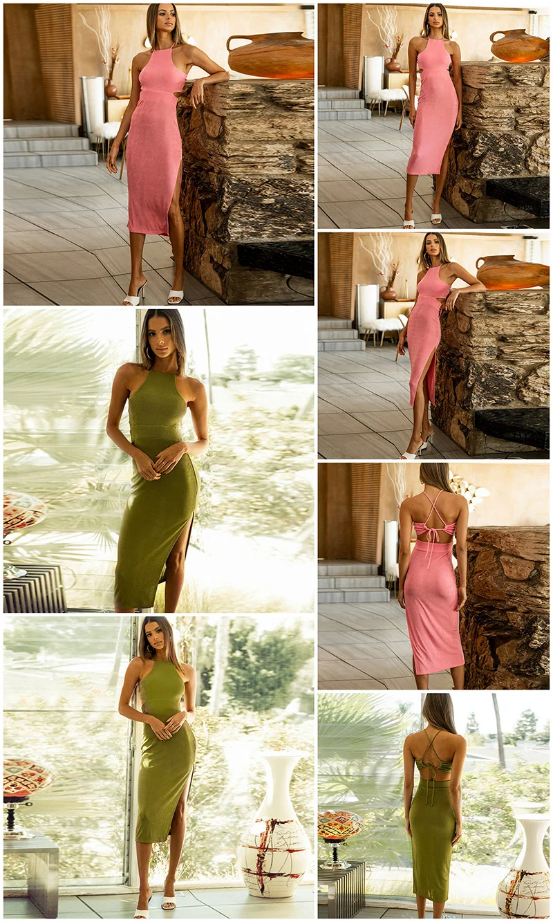 victoria’s vogue Spaghetti Strap Backless Long Dress Women Solid Sleeveless Sexy Sundress Ladies High Waist Side Split Dress Vestidos