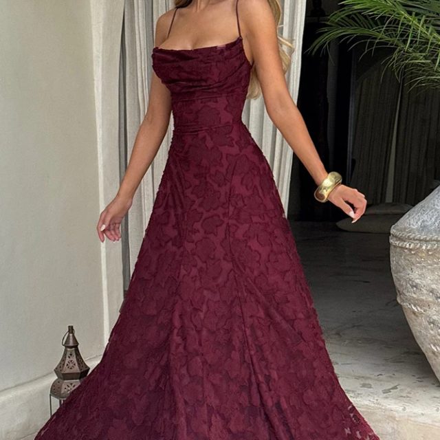 Victoria’s Vogue Spaghetti Strap Backless Sexy Maxi Dress Women Gown Fashion Off-shoulder Sleeveless Lace-up Evening Club Party Dress