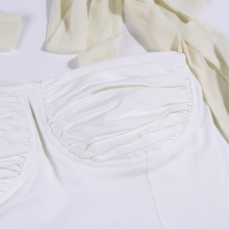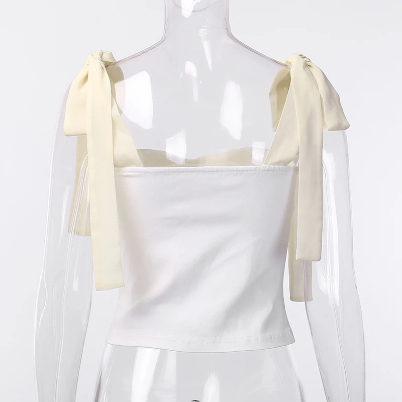 victoria’s vogue Spaghetti Strap Slash Neck Chiffon Camisole Women Sleevesless Casual Camisole Ruffles Backless BOW Bandage Crop Top