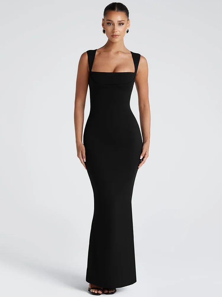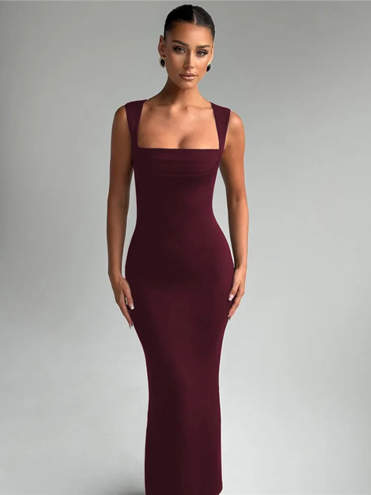 Victoria’s Vogue Square Collar Sleeveless Sexy Maxi Dress For Woman Fashion Spring Summer New High Waist Bodycon Club Party Long Dress