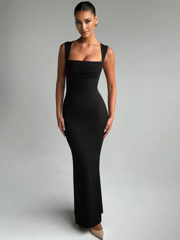 Step into confidence and elegance with this square collar sleeveless maxi dress — the perfect choice for modern women who want to look effortlessly beautiful and fashionable in every moment.