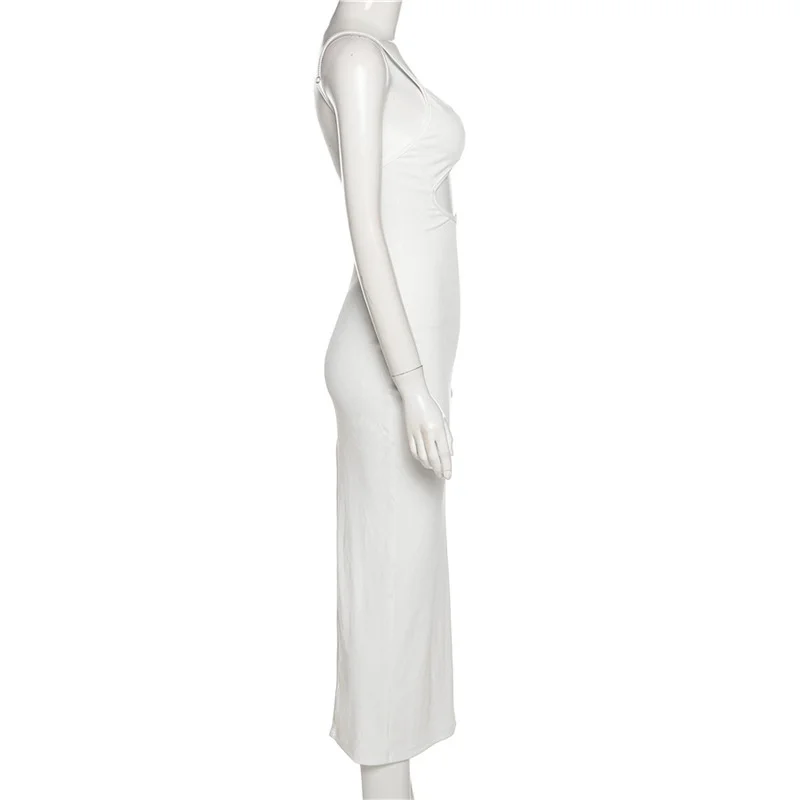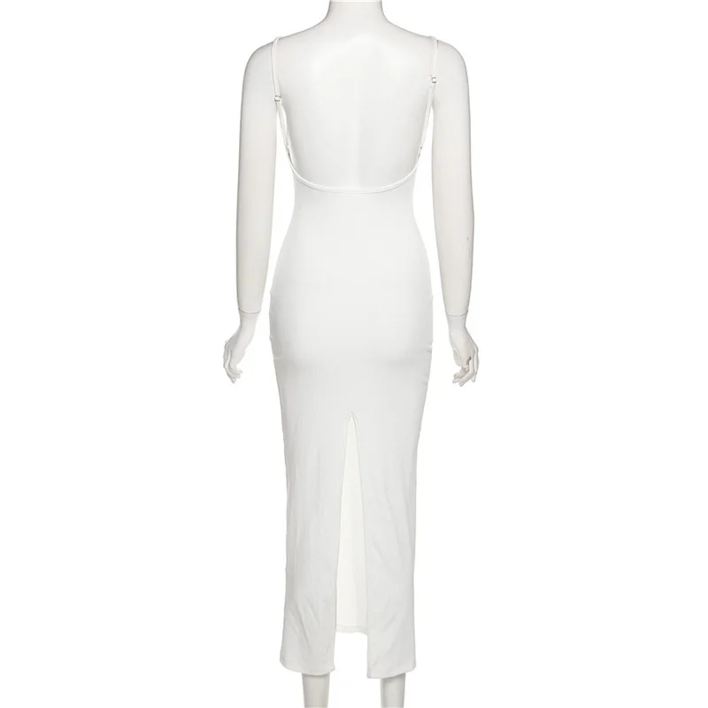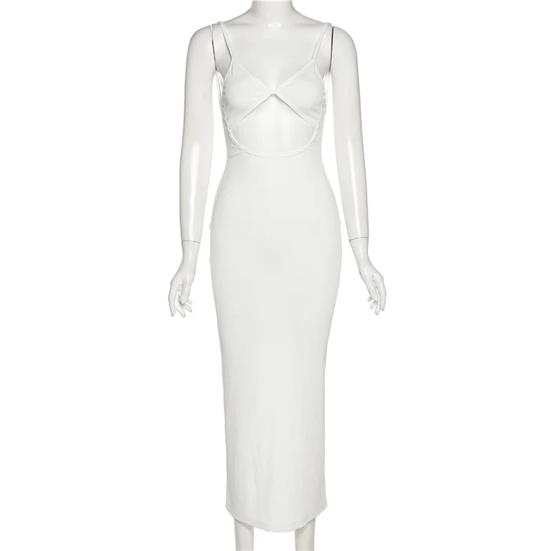 victoria’s vogue Square Collar Spaghetti Strap Dress Women Sexy Sleeveless Backless Female Streetwear High Waist Hollow Out Sheath Dress