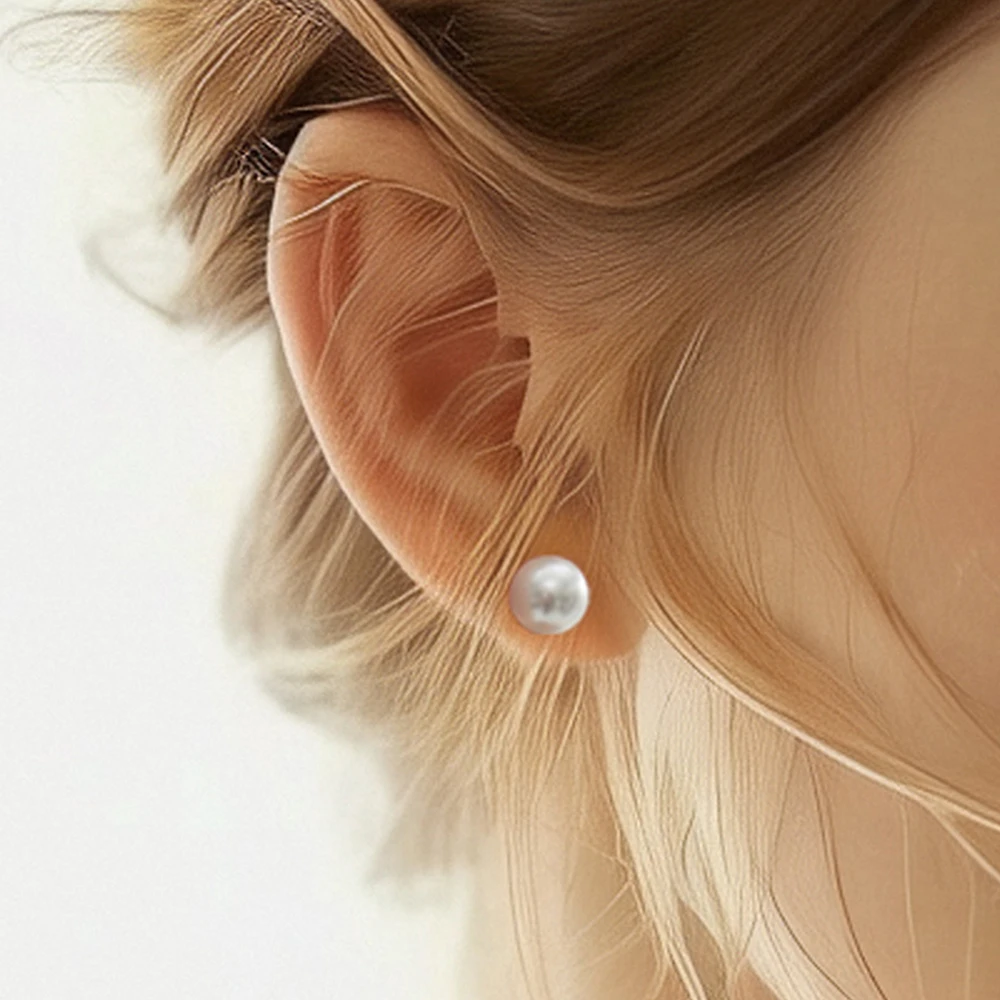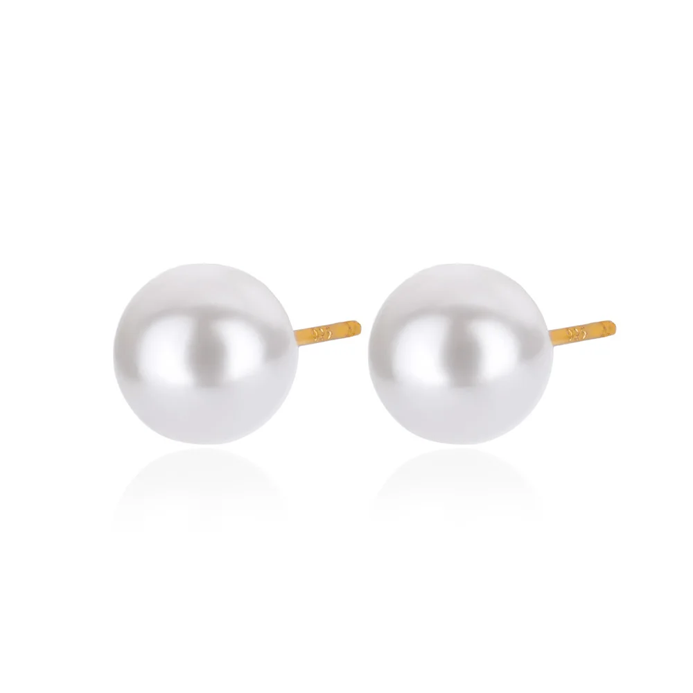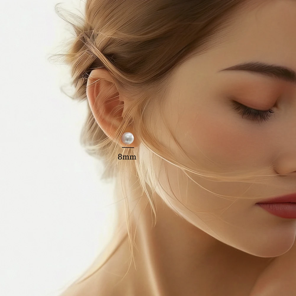 Victoria’s Vogue Stainless Steel Imitation Pearl Earrings 8mm White Pearl Stud Earrings for Women Girls Tiny Piercing Korean Fashion Tragus Ears