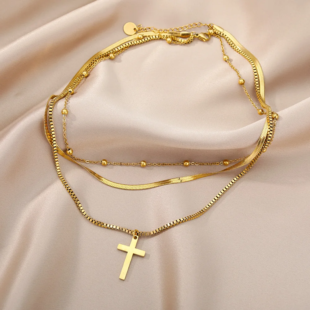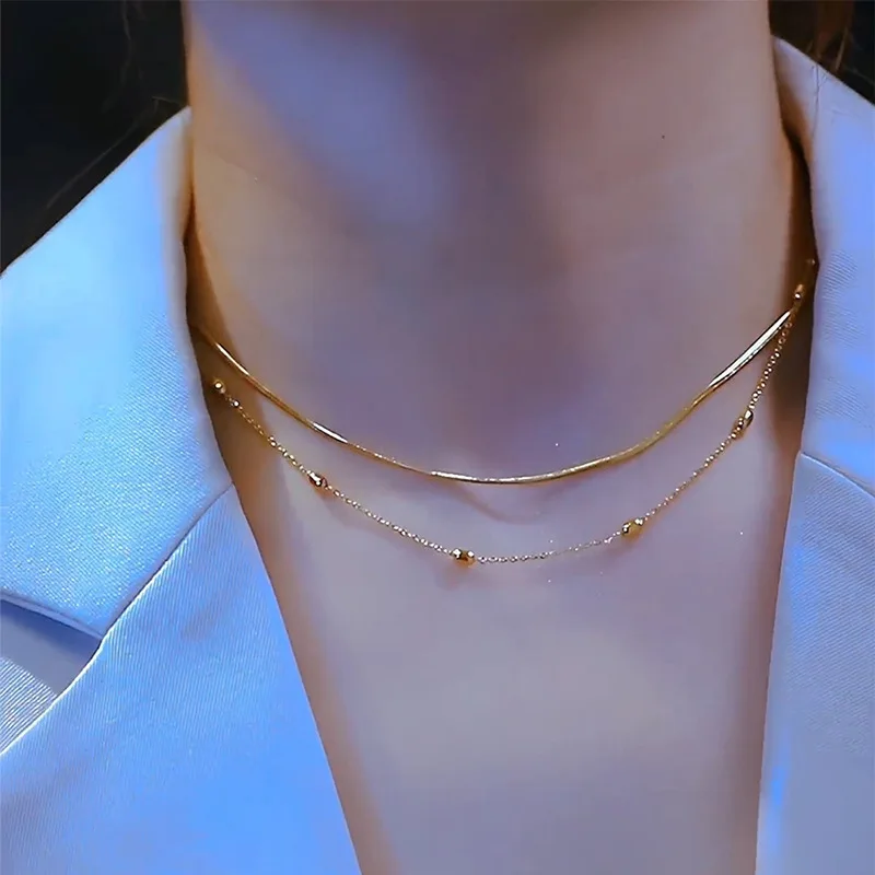 Victoria’s Vogue Stainless Steel Necklace For Women Rustproof Multilayer Stacked Choker Bead Chains Pendant Punk Trend Neck Jewelry Bijoux