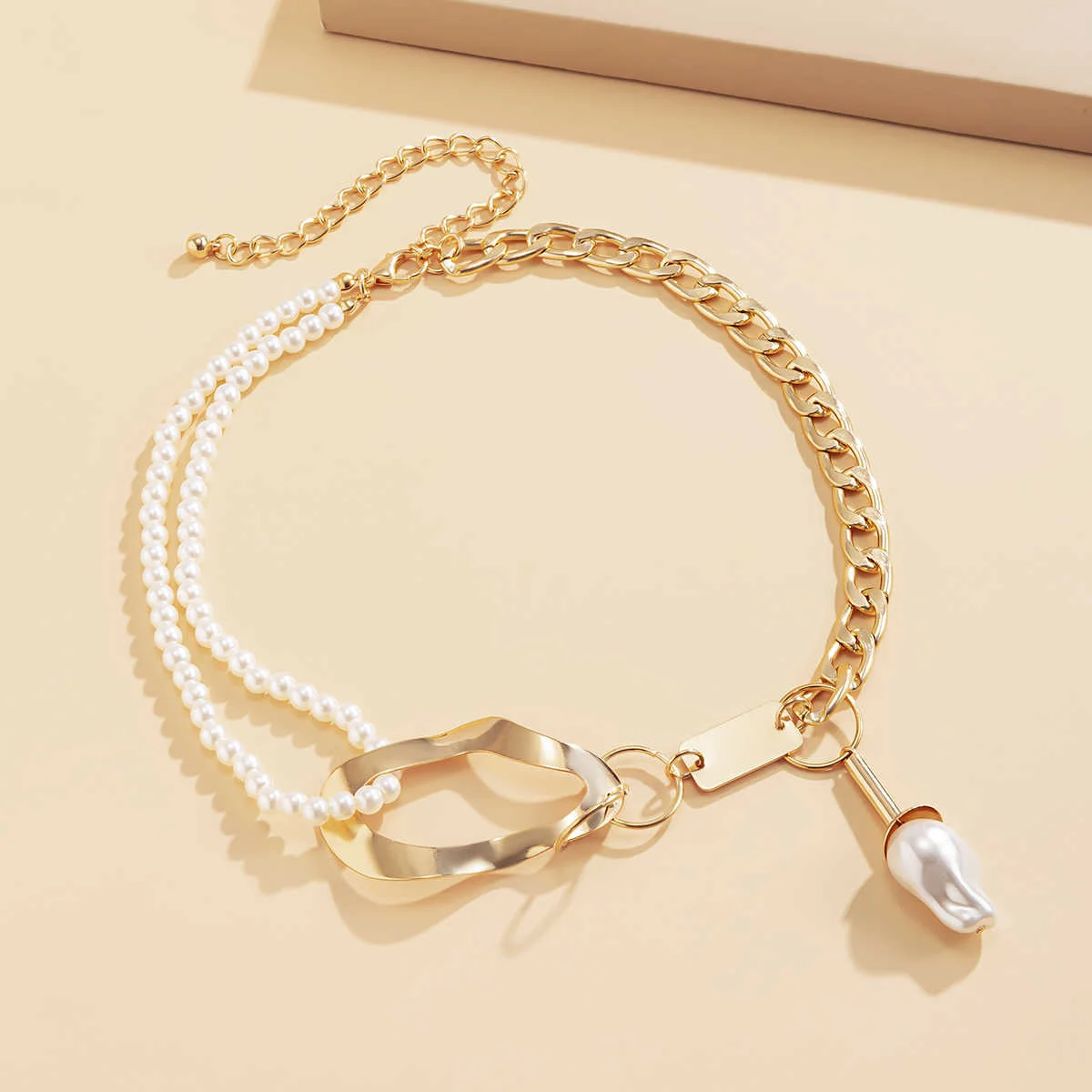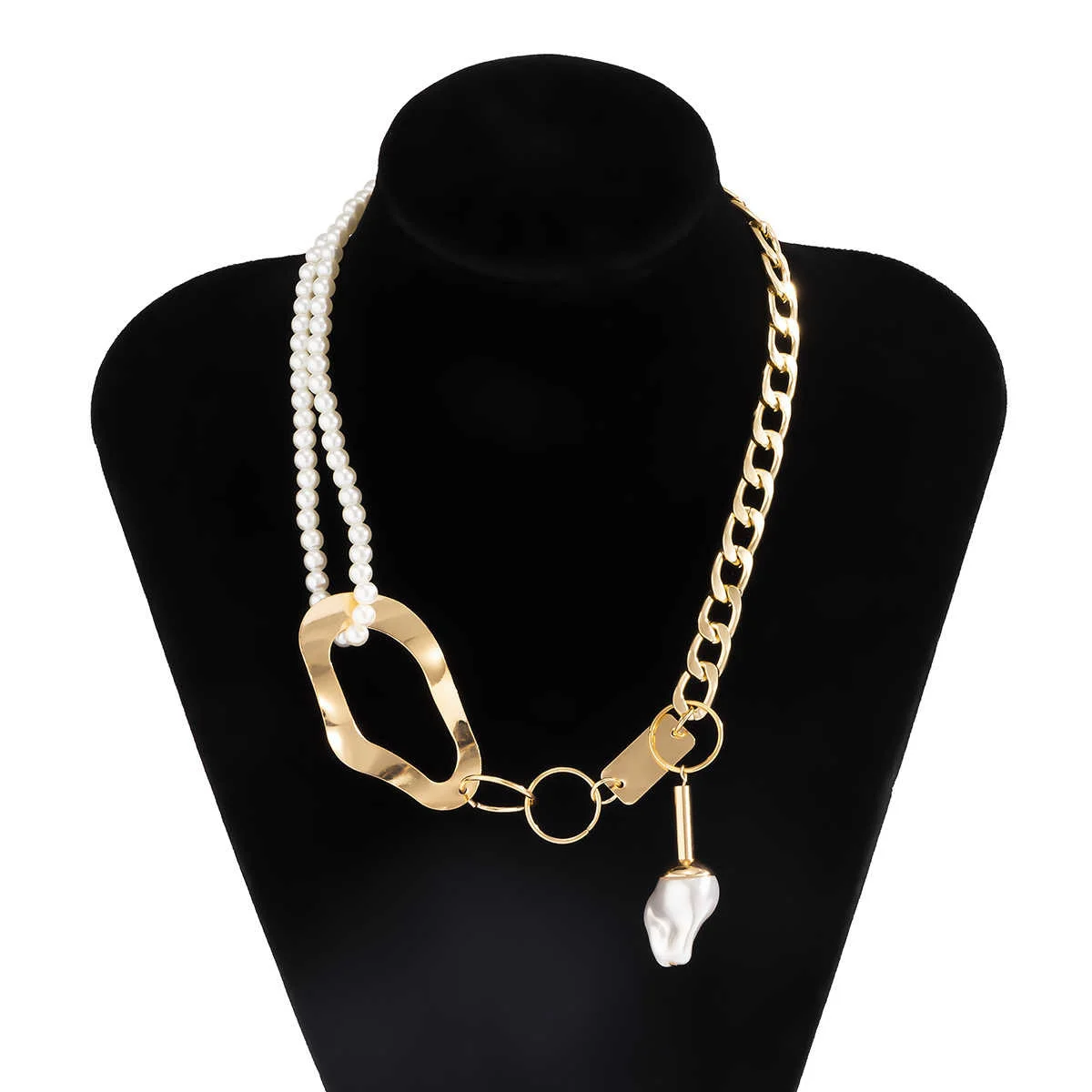 victoria’s vogue Steampunk Irregular Iron Sheet Link Chain Choker Necklace Baroque Imitation Pearl Pendant Necklace for Women Jewelry