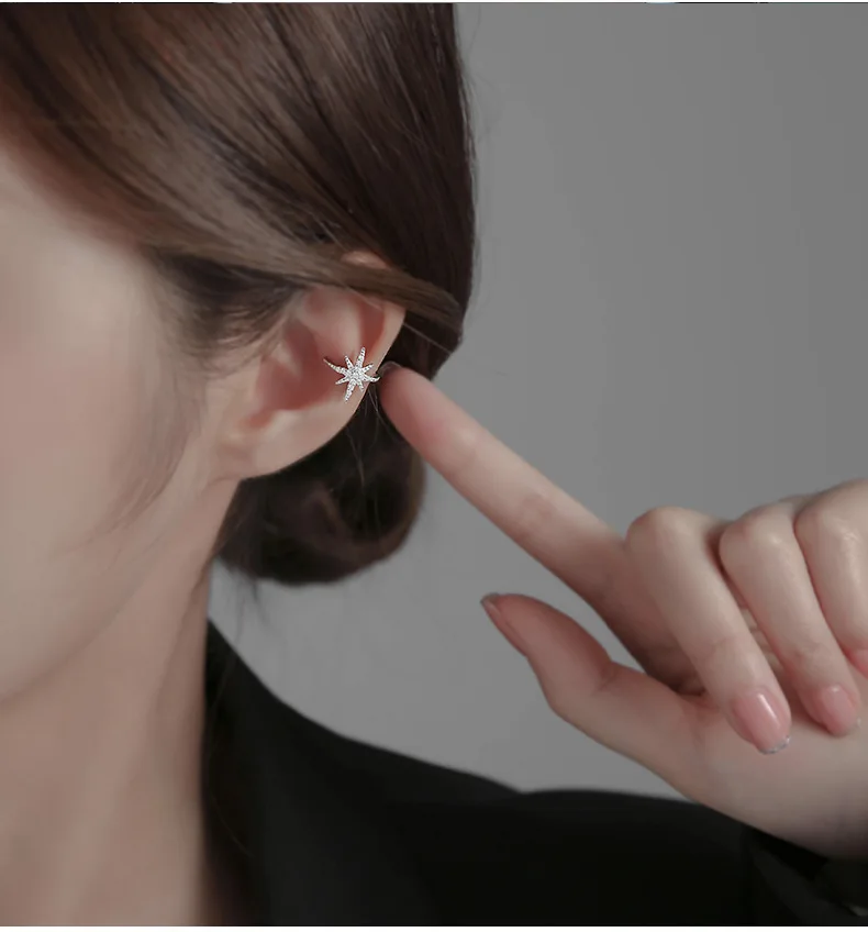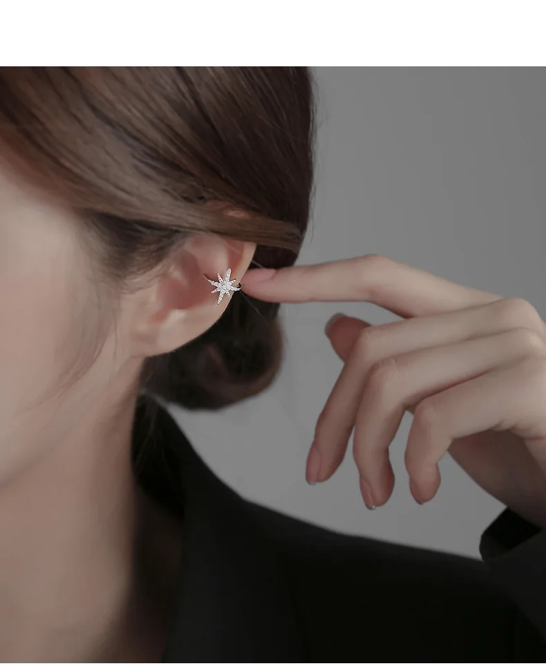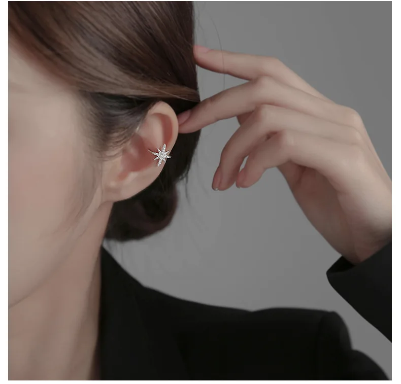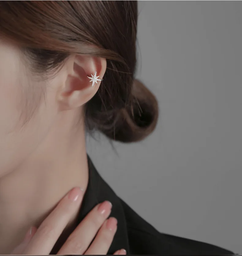 victoria’s vogue Sterling Silver Clip on Earrings Ear Cuff For Women Girl Lady Without Piercing Earring Jewelry Star earingsvictori