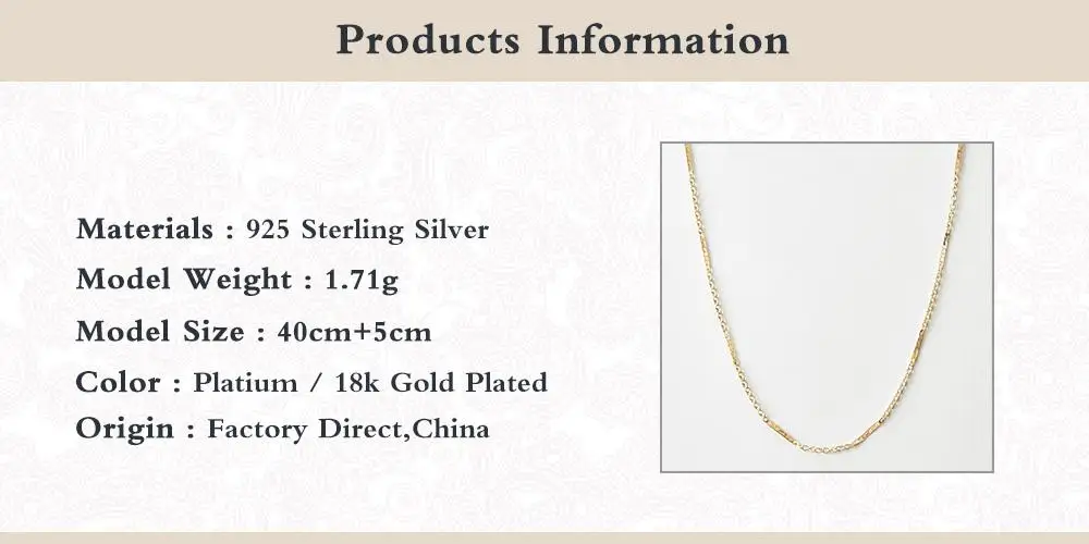 victoria’s vogue Sterling Silver Gold Chain Necklace for Women Gilrs Clavicle Bare Simple Chain Choker Necklace Fashion Fine Jewelryv