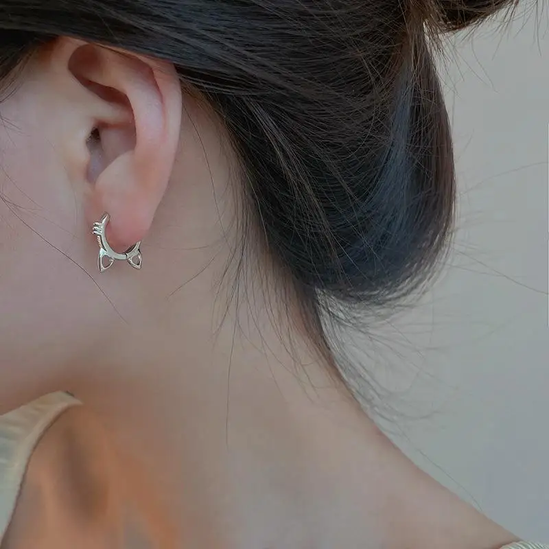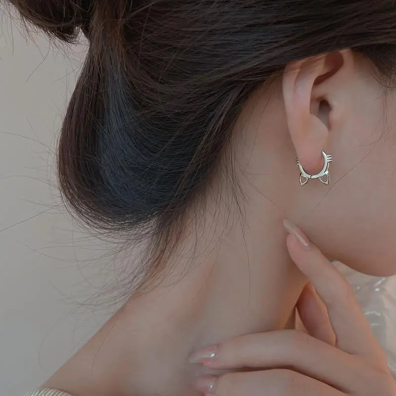 victoria’s vogue Sterling Silver Hot Sale Cat hoop Earrings Simple Temperament Exquisite Hot female Sexy Jewelry Gift