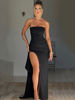 Victoria’s Vogue Strapless Backless High Split Maxi Dress For Women Black Off-shoulder Sleeveless Bodycon Club Party Long Dress Clothes