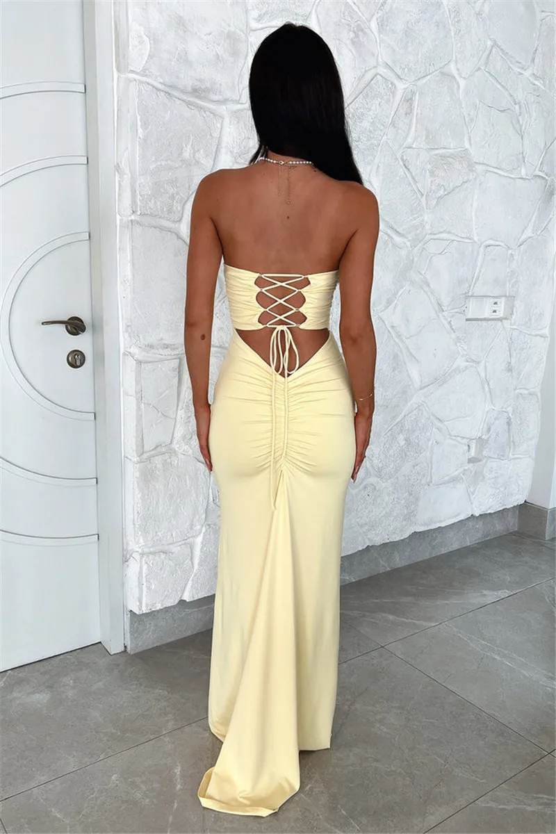 Victoria’s Vogue Strapless Backless Lace-up Maxi Dress For Women Summer New Off-shoulder Sleeveless Bodycon Club Party Long Dress