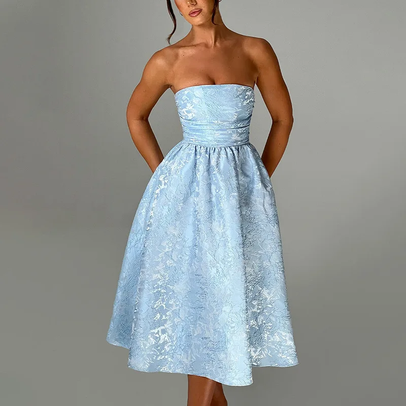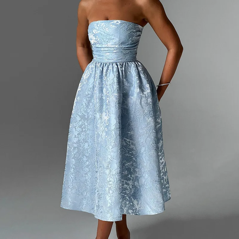 Victoria’s Vogue Strapless Backless Sexy Midi Dress For Women Fashion Off-shoulder Sleeveless A-line Loose Club Party Sexy Long Dress