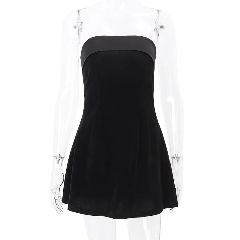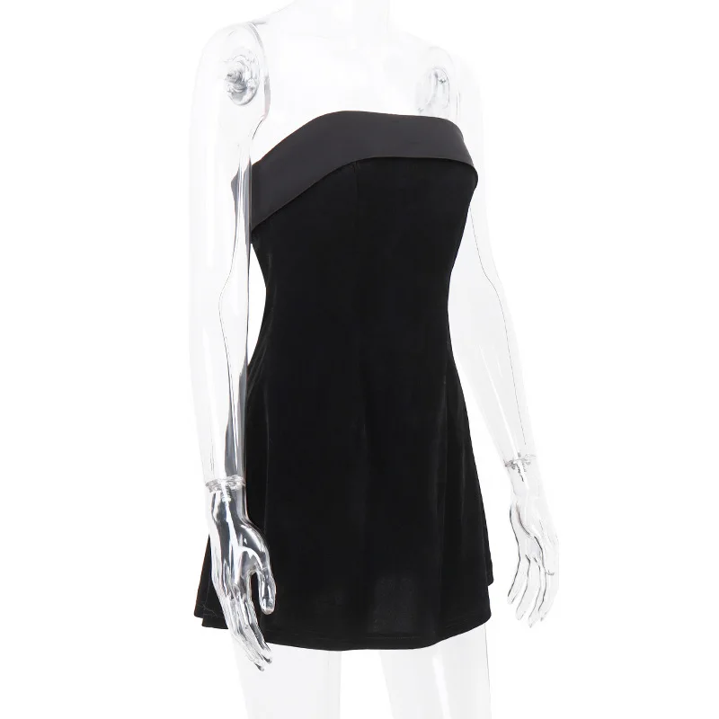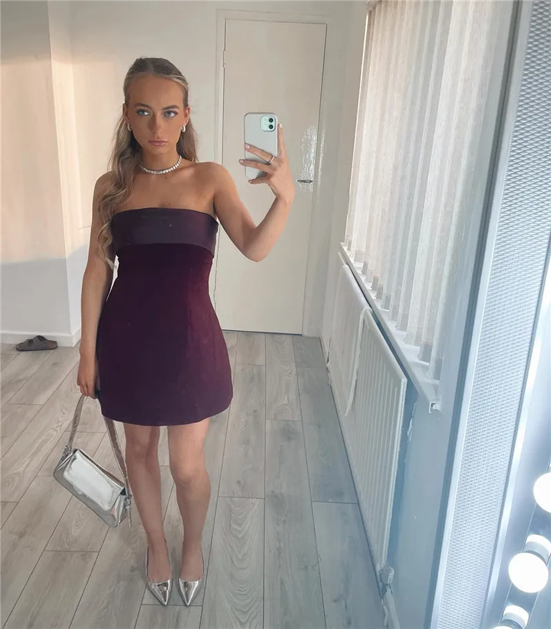 Victoria’s Vogue Strapless Backless Sexy Mini Dress Women Fashion With Zipper Off-shoulder Sleeveless A-line Bodycon Club Party Dress