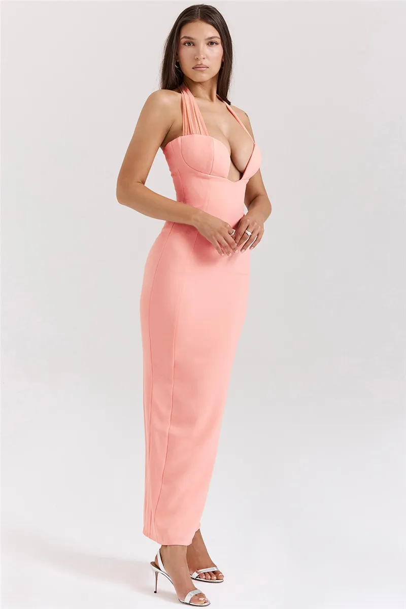 Victoria’s Vogue Strapless Halter Sexy Maxi Dress For Women Fashion Cut Out Sleeveless Backless Bodycon Club Party Long Dress Elegant