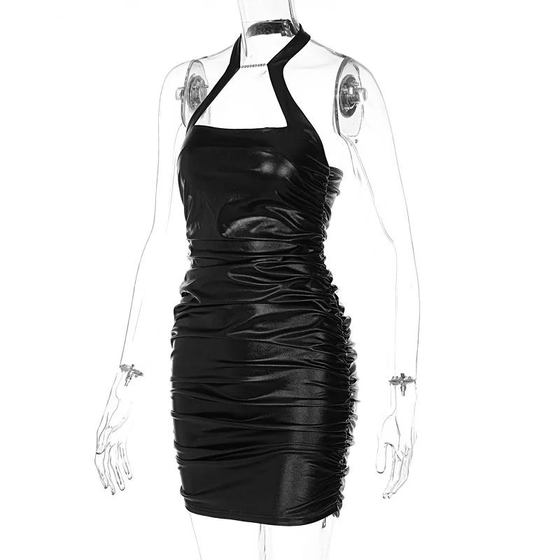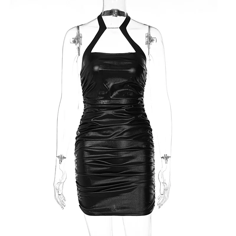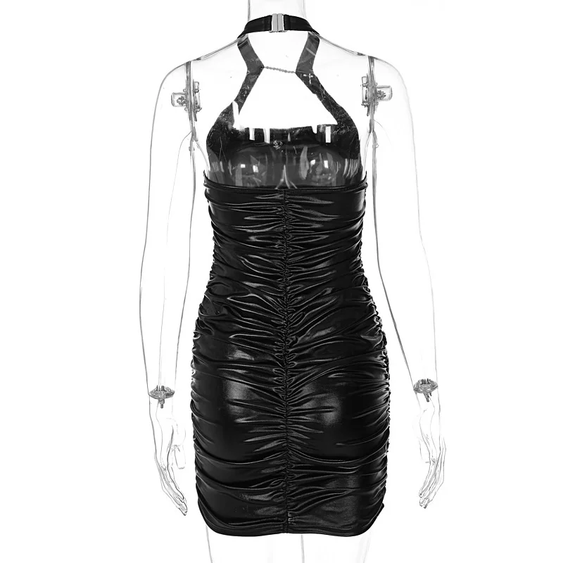 victoria’s vogue Strapless Pleated Dresses Women Sexy Solid Sleeveless Backless Elegant Streetwear Off Shoulder Hollow Out Halter Dress