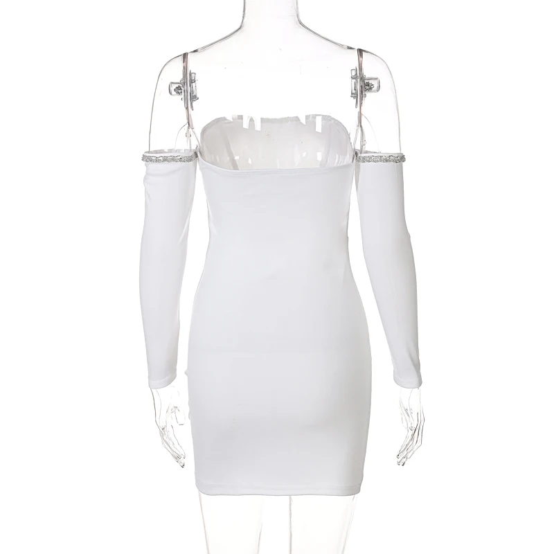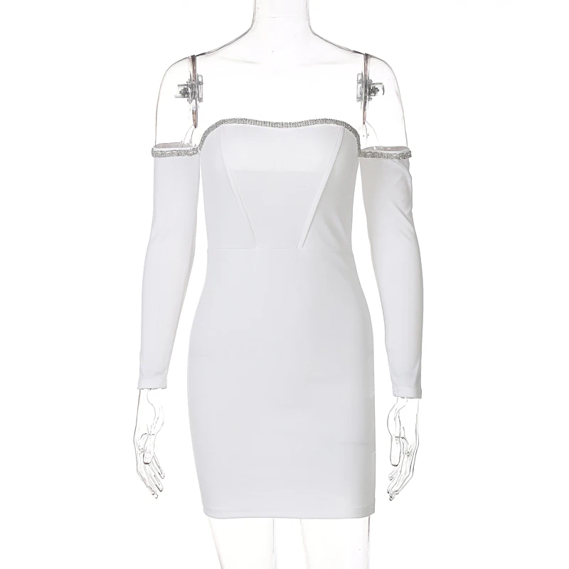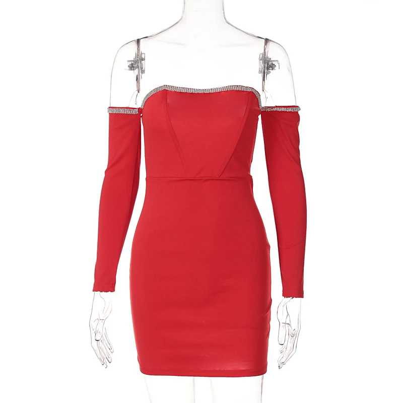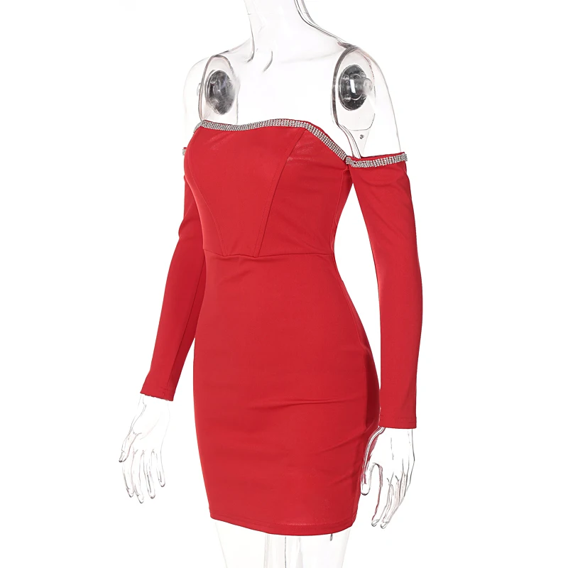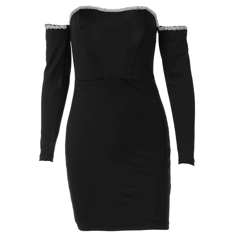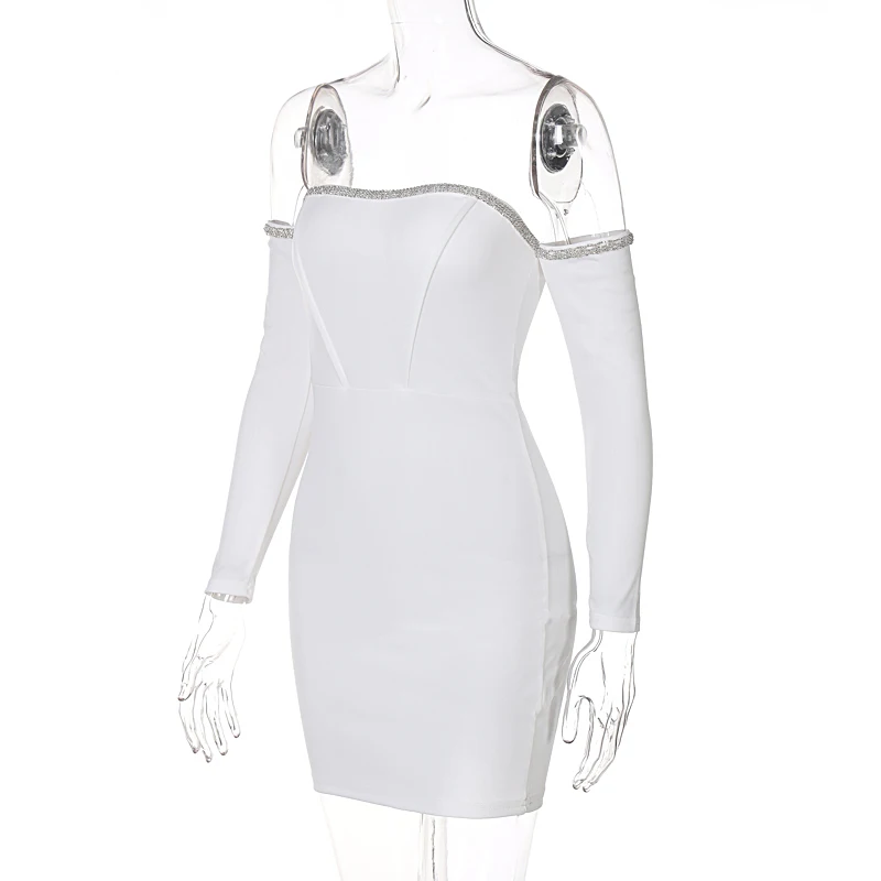 victoria’s vogue Strapless Tube Off Shoulder Long Sleeve Diamond Edging Bodycon Slim Sexy Mini Dress 2022 Fall Women Christmas Party Y2K