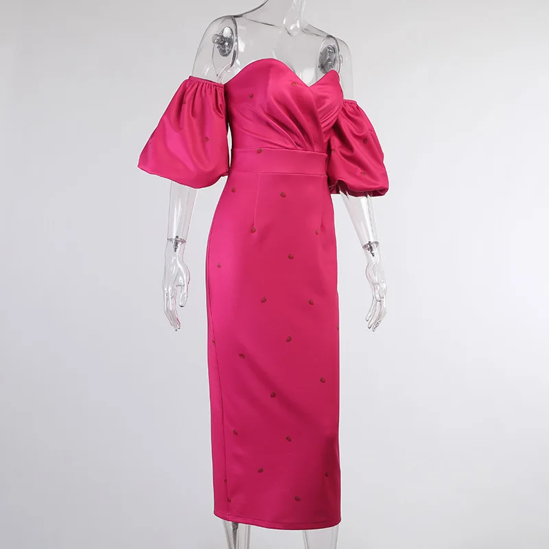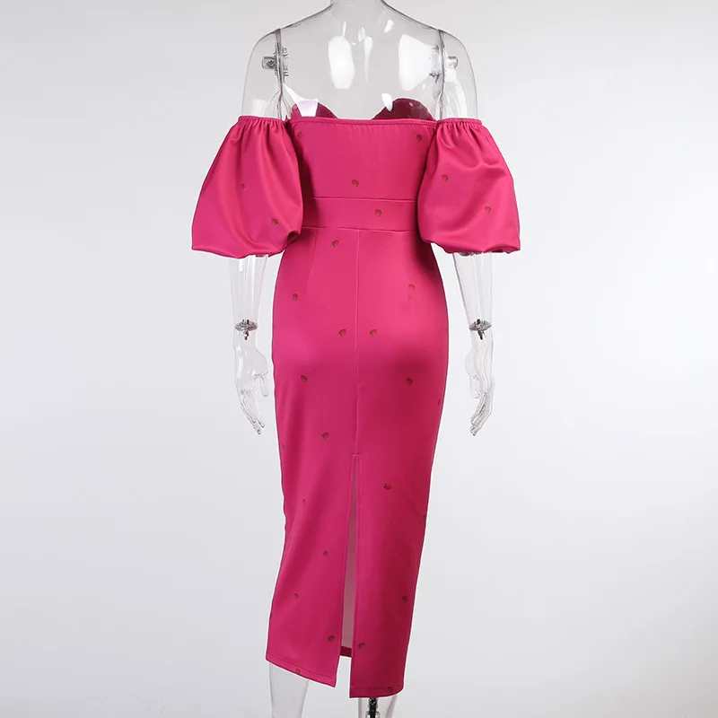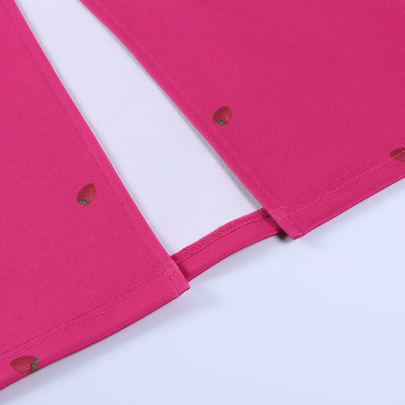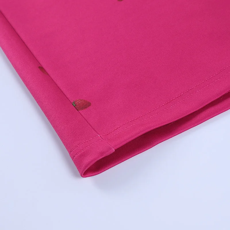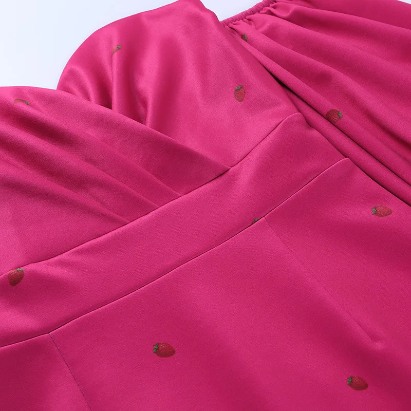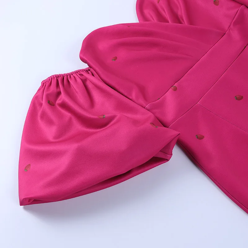 victoria’s vogue Strawberry Floral Print Short Puff Sleeve Dress Women Sexy Strapless Party Club Bodycon Dresses Ladies Pleated Vestidos