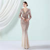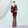 victoria’s vogue Stretch Sequined Maxi Dress Full Sleeve V Neck Mermaid Evening Night Long Party Prom Dress