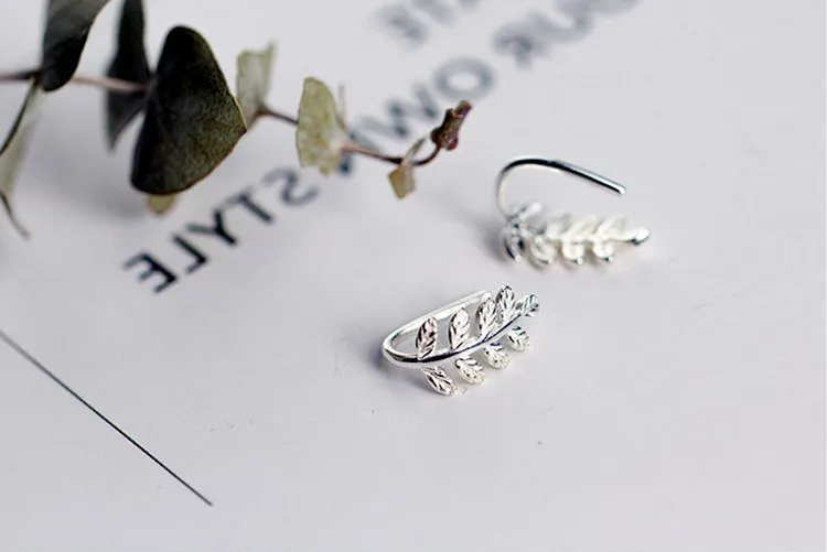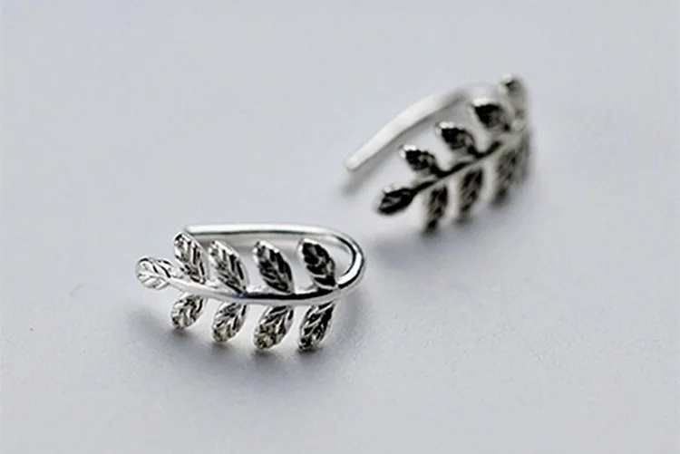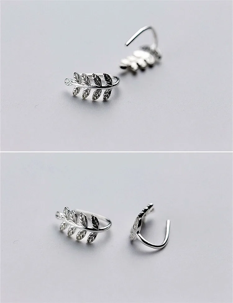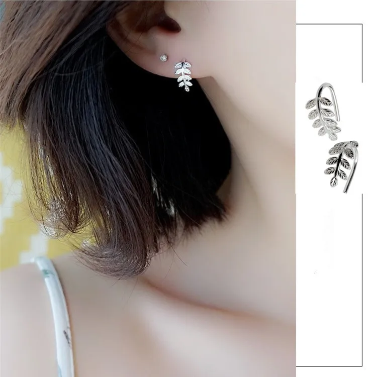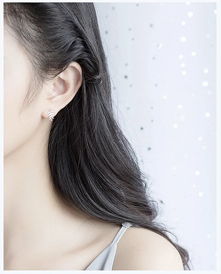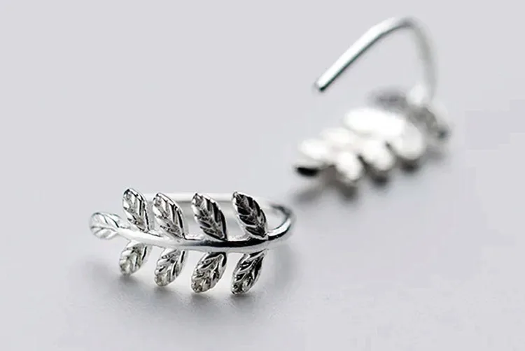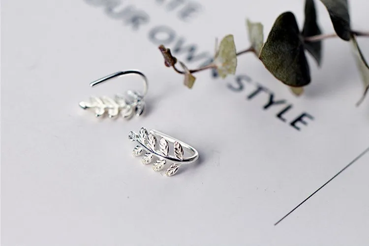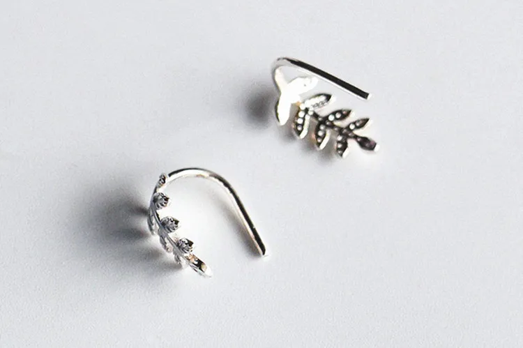Victoria’s Vogue Style New Fashion Simple Leaves Ear Hook 925 Sterling Silver Jewelry Small Honey Leaves Fresh Mini Tree Earrings