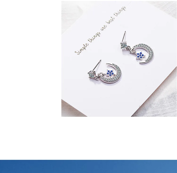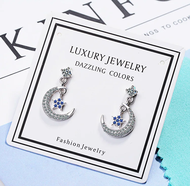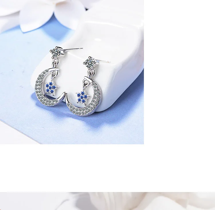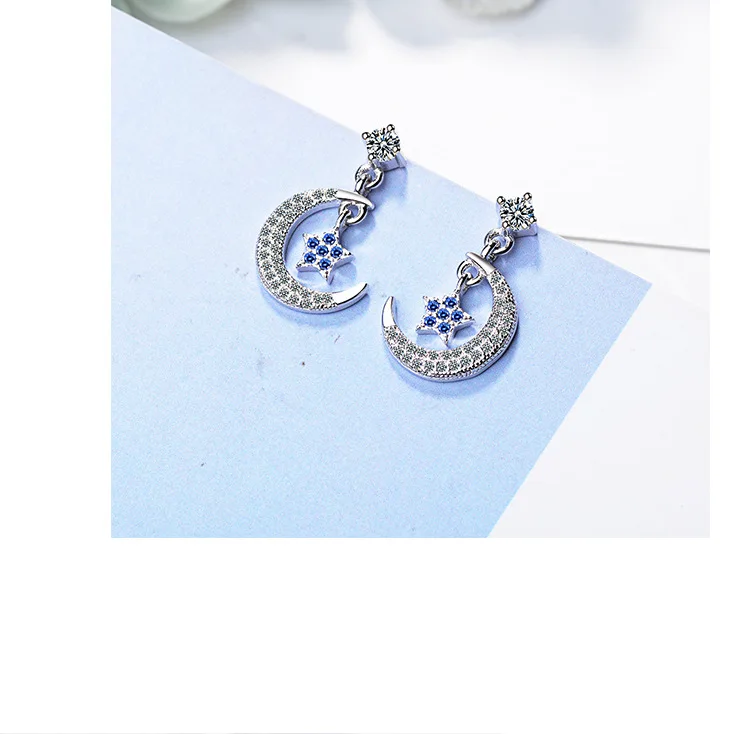 Victoria’s Vogue Style Sweet Temperament Flash Fashion 925 Sterling Silver Jewelry Personality Cute Star And Moon Dangle Earrings