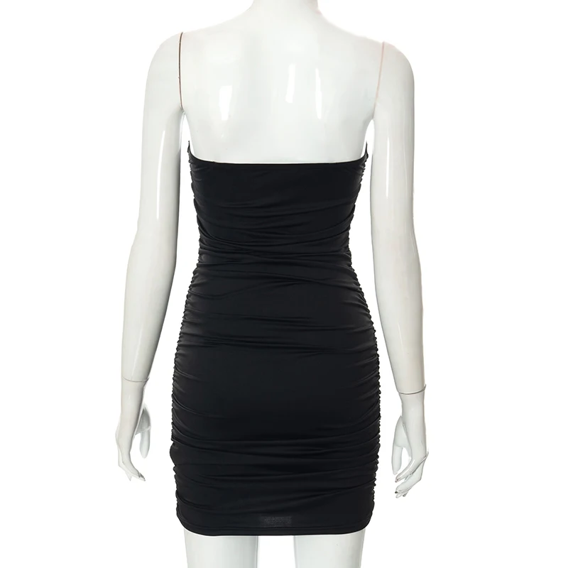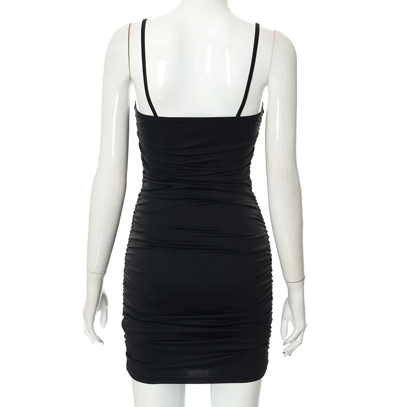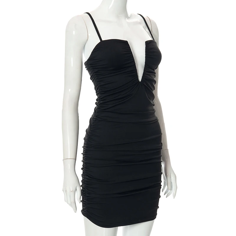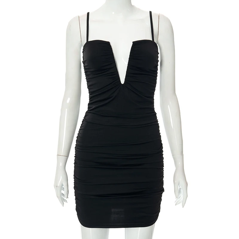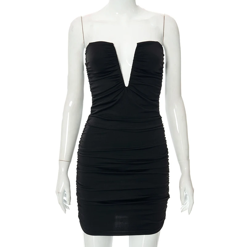 victoria’s vogue Summer 2022 Sexy Women Dress Solid Color Sleeveless V Neck Club Style Pleated Mini Skirt dress