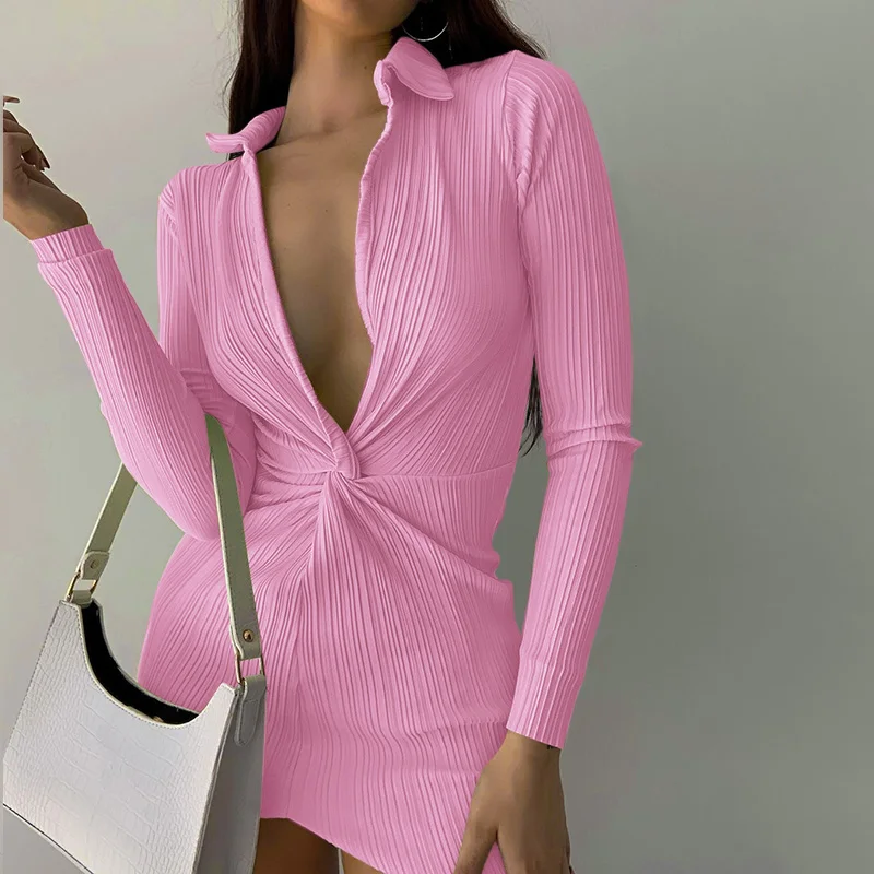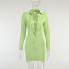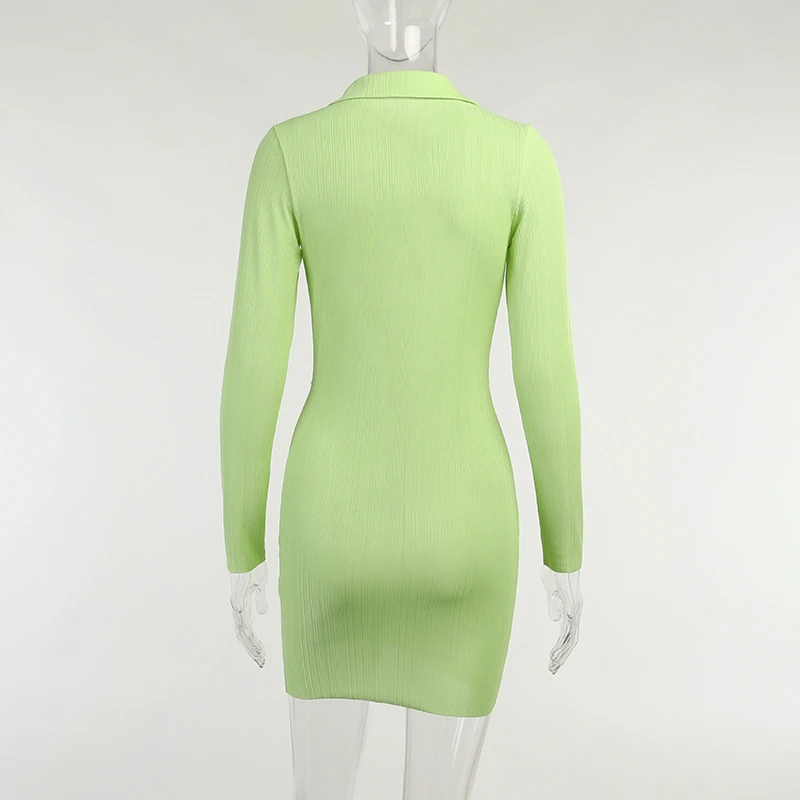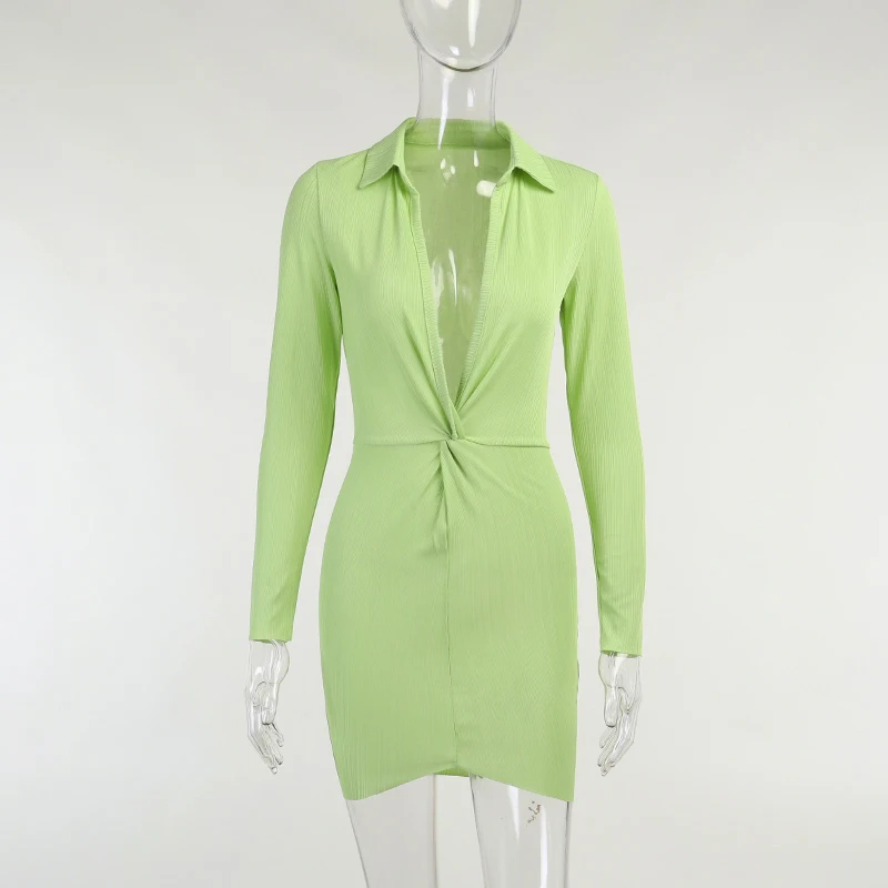 victoria’s vogue Summer Long Sleeve Dress For Women CottonTurn-Down Neck Twist Green Mini Sexy Office wear Dresses For Girl Casual 2021