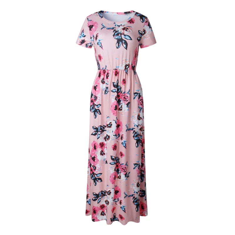 Victoria’s Vogue Summer Maxi Dress Women 2024 Pink Floral Print Boho Beach Dress Ladies Evening Party Long Dress Sundress Vestidos de festa 3XL